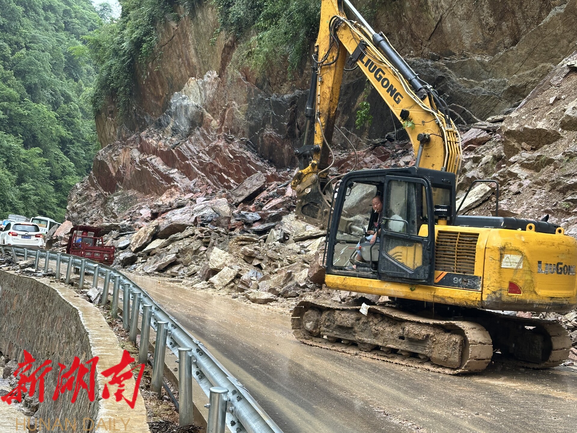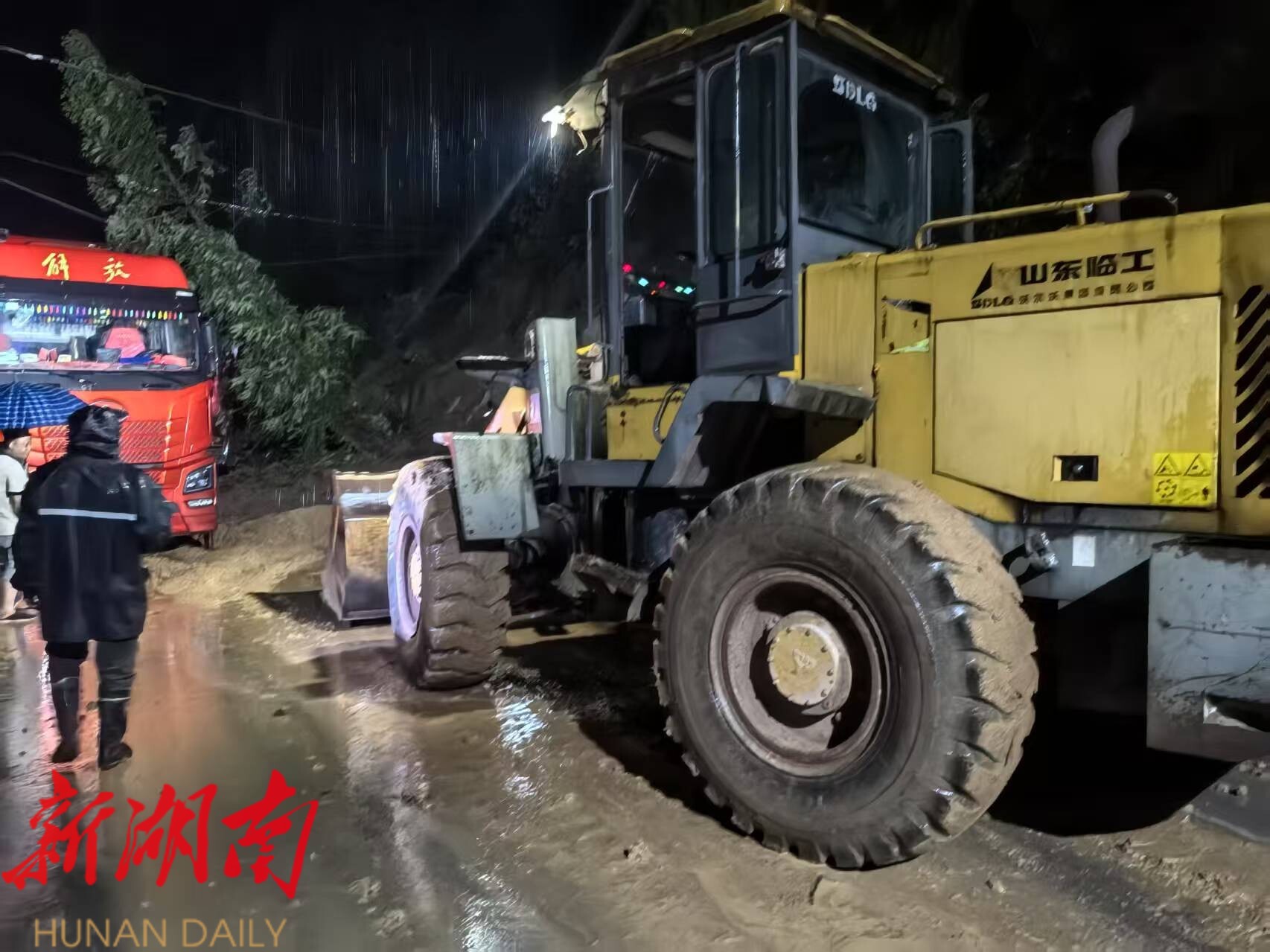 湖南日报·新湖南客户端5月22日讯( 通讯员 高丽文 张红玉)5月22日凌晨2点,暴雨倾盆,黑夜如墨。桑植县公路建设养护中心应急抢险人员在巡查中发现,S303线走马坪白族乡滚水峪村路段受持续强降雨影响突发山体滑坡,大量土石倾泻在路面,造成该路段双向交通中断。