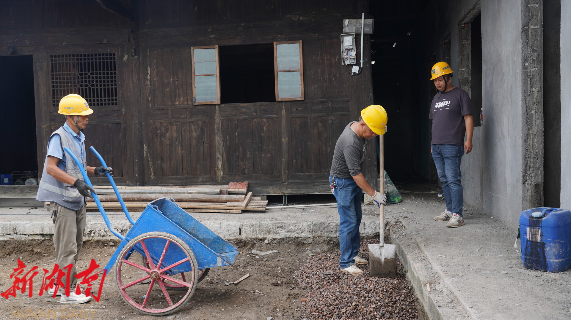 "这座三号楼是我们2月底正式进场施工的。"湖南建工第七工程有限公司荆坪项目三号板块施工负责人介绍道,"施工过程中,我们严格按照古建筑修缮规范,先后完成了地面破除、瓦面更换、结构加固、桥体粉刷等基础工程,并对建筑进行了铺装瓴条、更换梁木、装配木结构密板等专业修复。"