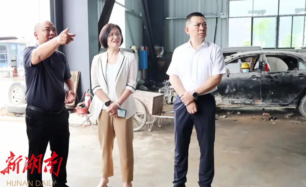 黄海蓉首先来到湖南赢家报废机动车回收拆解车间,实地了解企业生产经营、原材料供应、技术拆解、产业链协同及行业未来发展规划等情况。