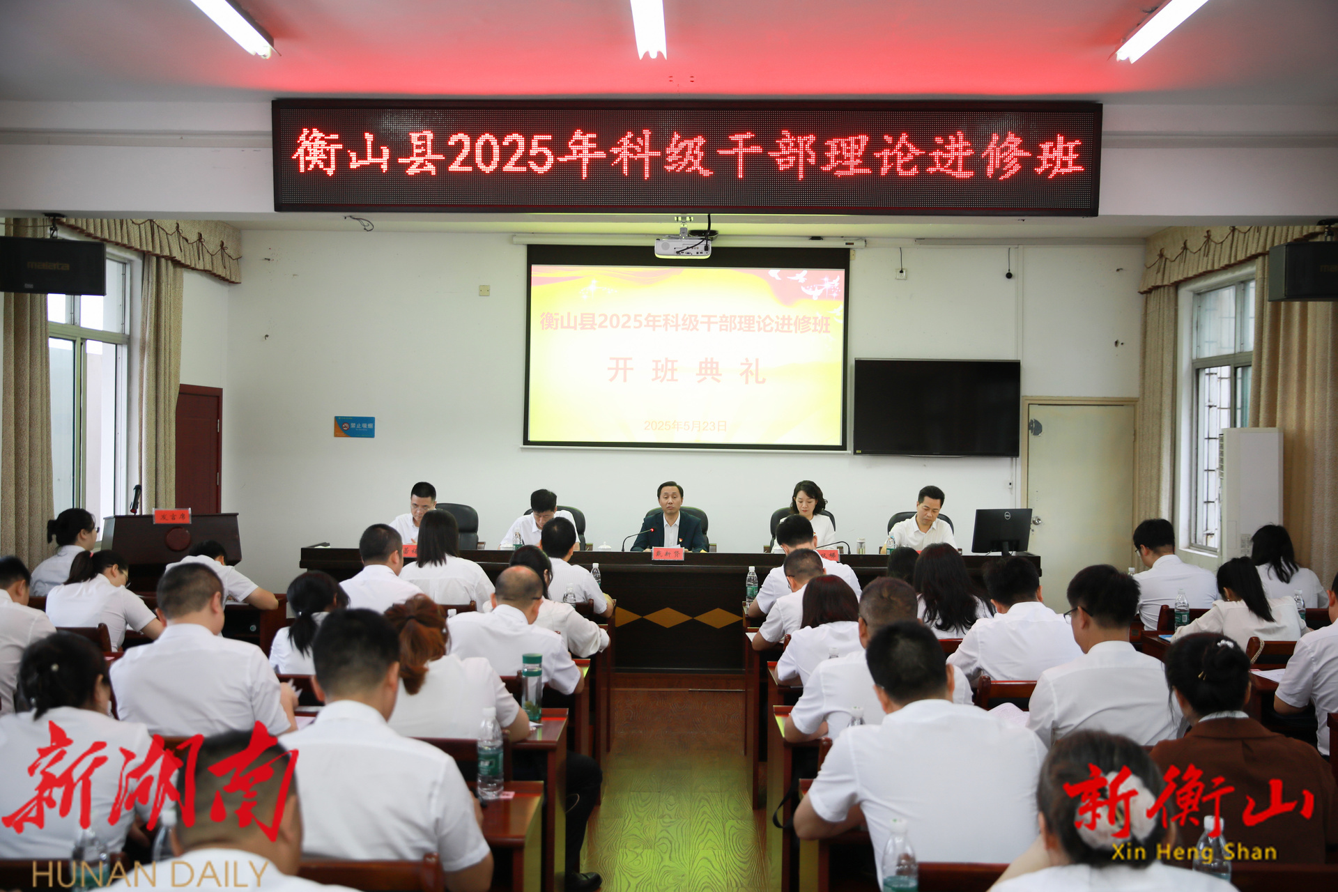 新衡山客户端5月23日讯(记者:刘永欢 周彭斌)5月23日,2025年科级干部理论进修班在县委党校开班。衡阳市政协副主席、衡山县委书记戴新贤作开班动员讲话并上开学第一课,县委常委、组织部部长彭双娣主持开班仪式。