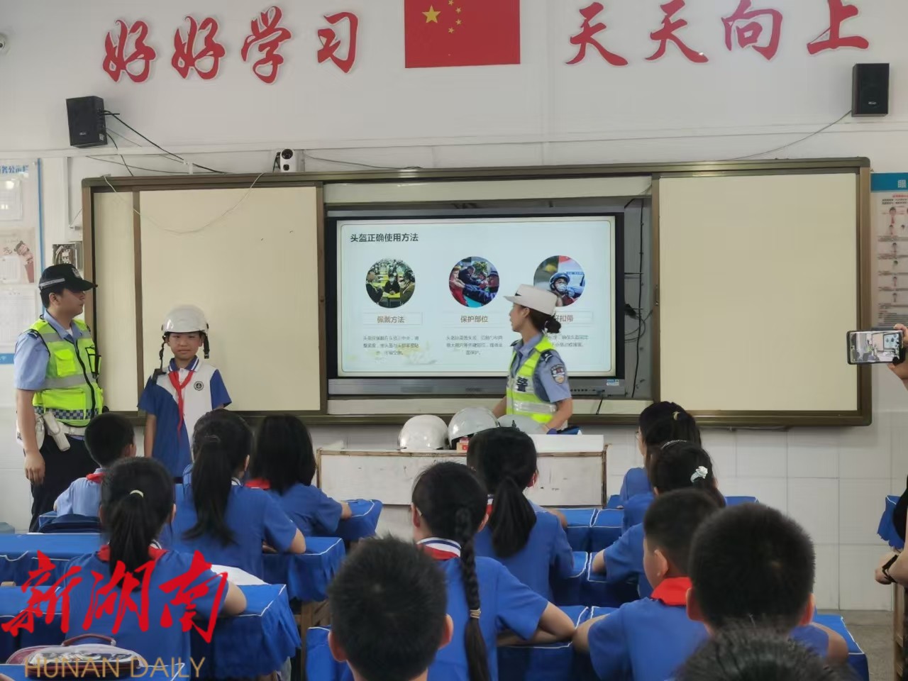 湖南日报·新湖南客户端(通讯员 汪武 任娜)“佩戴头盔时要系紧卡扣……”近日,湘阴县交警大队走进城北学校,开展“一盔一带”安全教育宣传活动。
