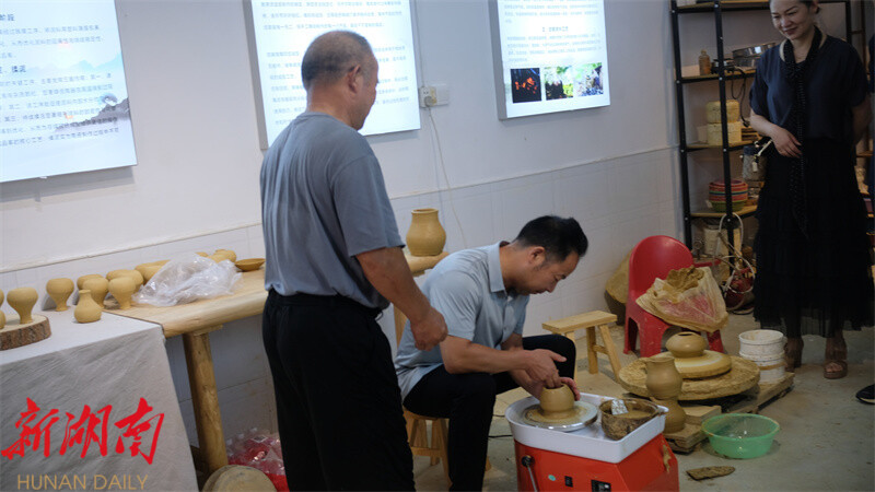 在公田镇巴陵青陶制作基地,委员们热情高涨地参与青陶拉坯工艺体验。在非遗传承人彭泽荣的耐心指导下,委员们亲手感受陶泥在指尖的变化,体验将泥团塑造成型的奇妙过程。拉坯体验结束后,委员们近距离参观了烧窑环节,了解高温烧制中决定青陶成色与品质的关键要素。面对巴陵青陶传承人才短缺、市场推广不足等现实困境,委员们建议,要加强与学校、社区的合作,开展巴陵青陶制作体验课程,吸引更多年轻人关注和参与。同时,利用电商平台、文化展会等渠道,拓宽销售市场,提升巴陵青陶的知名度和影响力。
