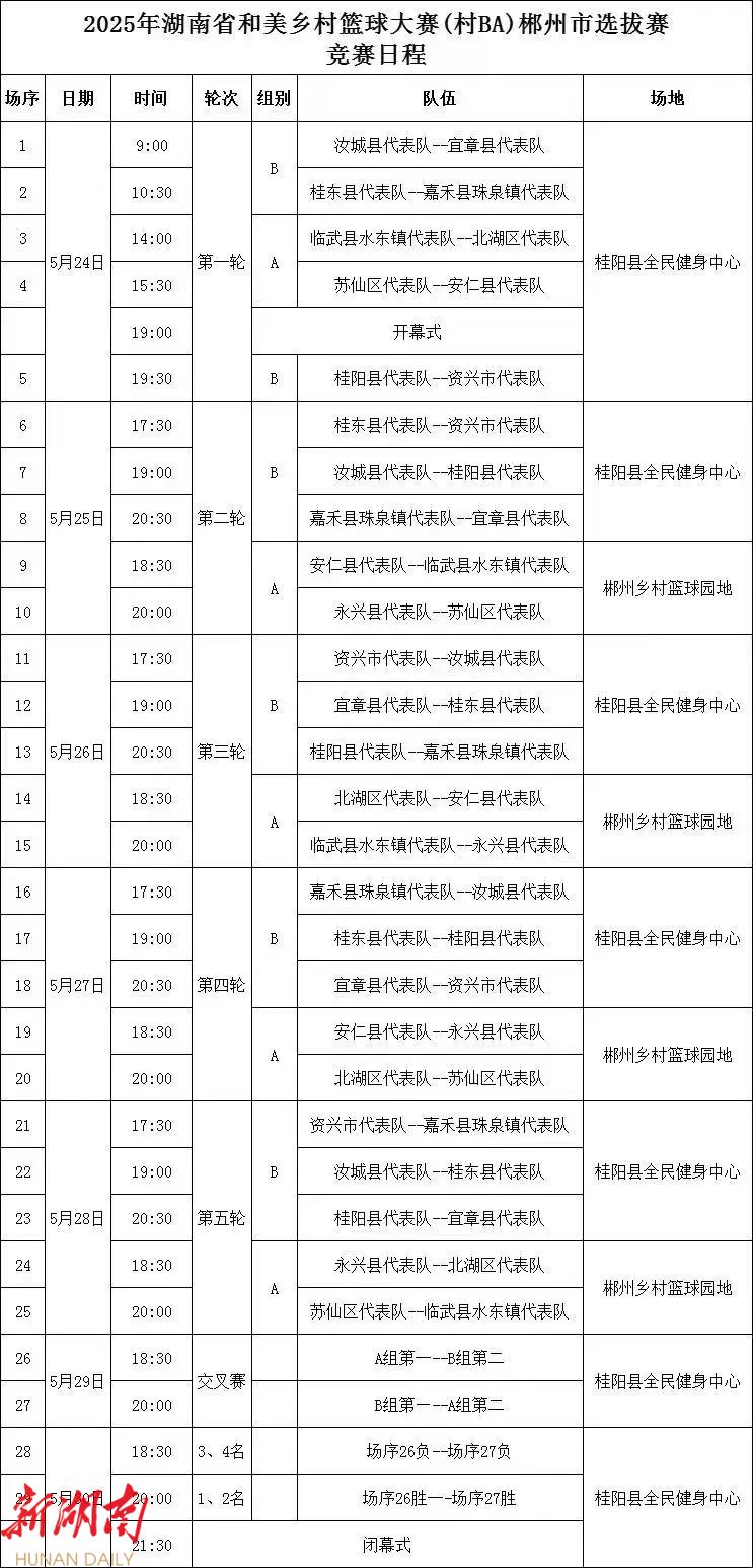 2025年湖南省和美乡村篮球大赛(村BA)郴州市选拔赛详细赛程来了!