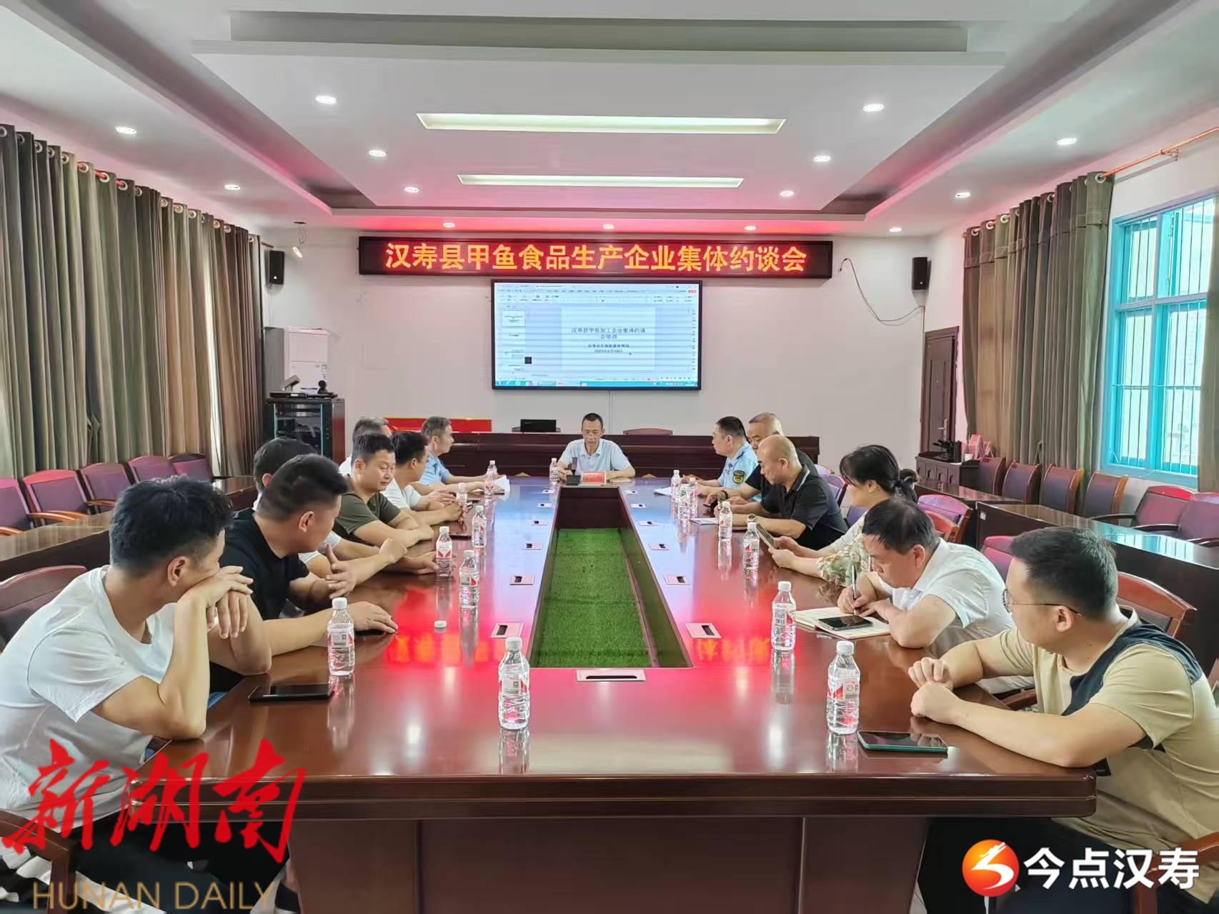 约谈要求:一是,各企业必须高度重视食品安全工作,严格履行进货查验记录制度,严把进货查验关,坚决杜绝不合格产品流入市场;二是,企业要不断增强自检能力,做到产品批批出厂检验,并保存相关记录,做好留样;三是,企业禁止滥用食品添加剂;四是,企业要共同保护“汉寿甲鱼”公共品牌,产品标签不擅自标识“汉寿甲鱼”地理商标。