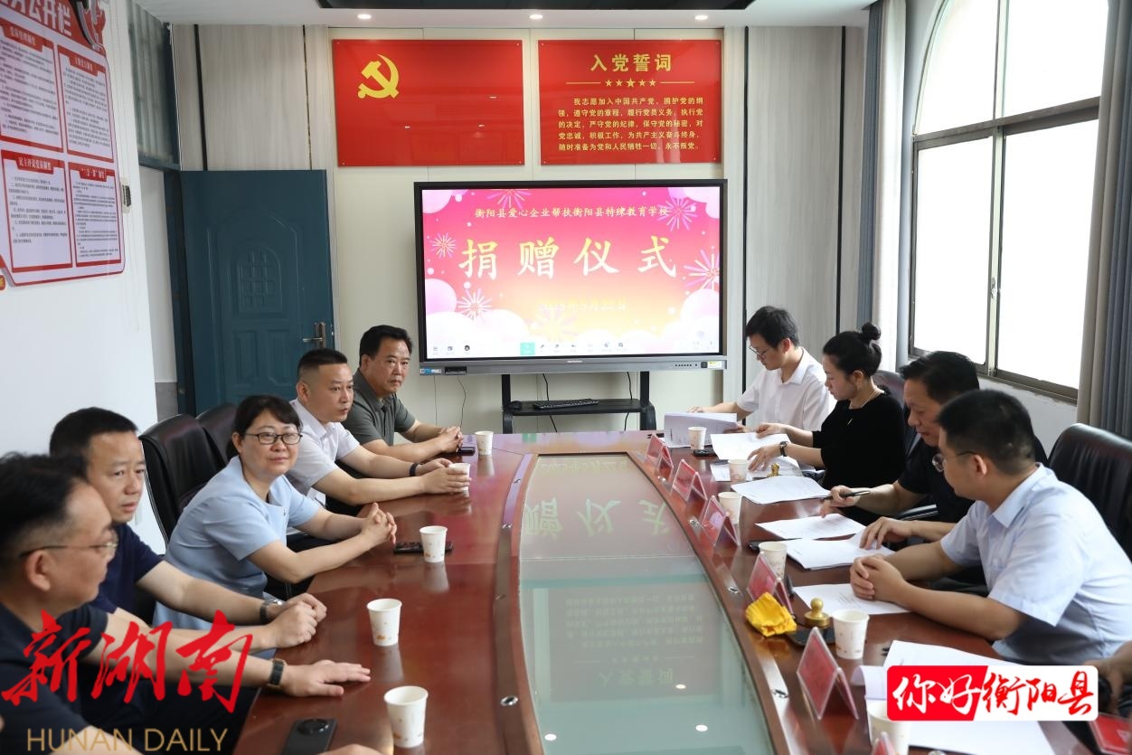 衡阳县融媒5月23日讯 (通讯员:李良 谭连海 蒋彦) 5月22日上午,衡阳县特殊教育学校内暖意浓浓,衡州农商银行、县沪农商村镇银行、得阳鞋业、启辉建筑公司等4家爱心企业,通过县慈善总会对口向学校捐赠5万元,用于采购空调、洗衣机等,成功为全校166名特殊学生和老师们实现心愿。
