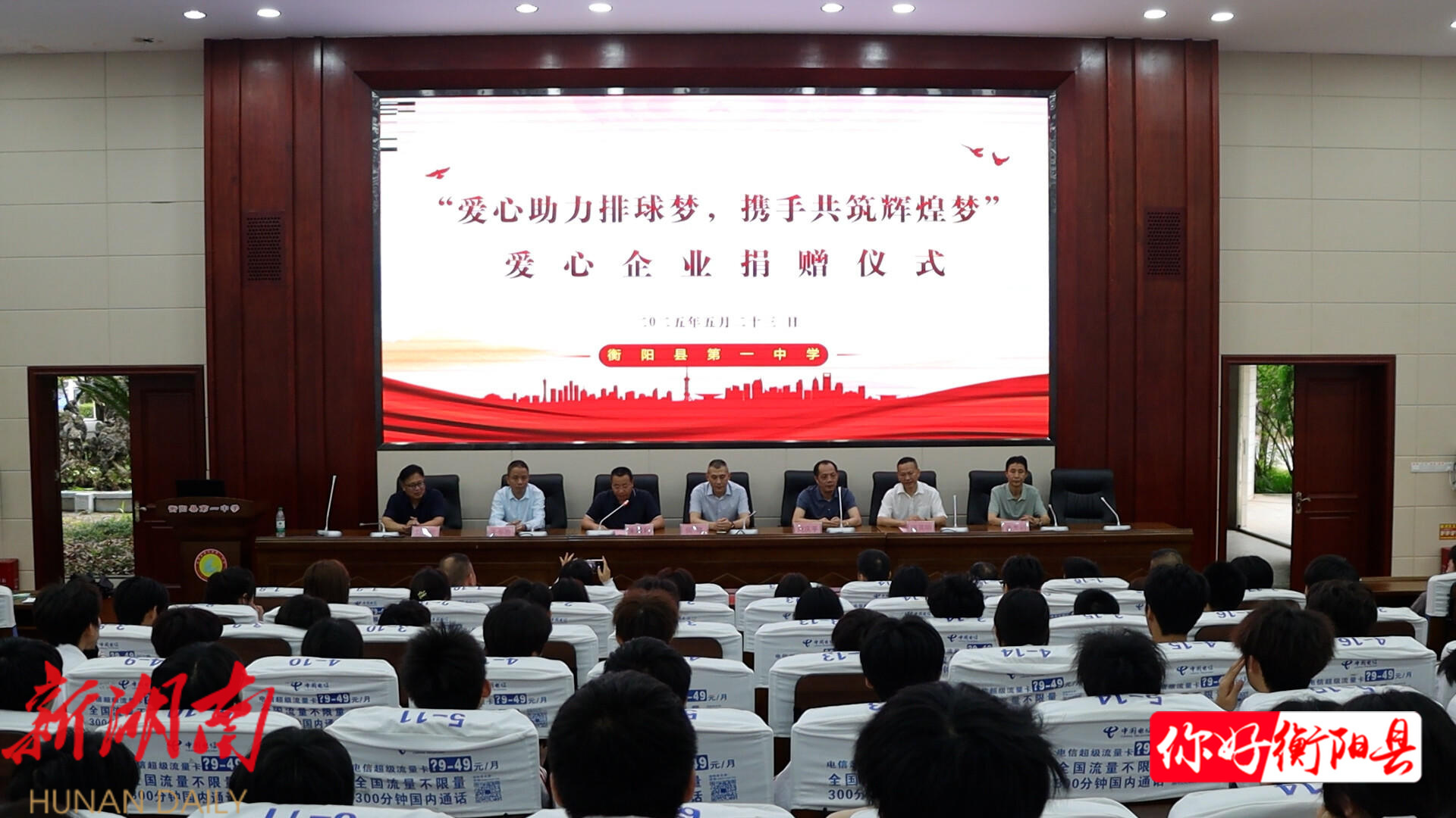 衡阳县融媒5月23日讯 (记者:刘沛林) 5月23日,湖南岱鑫工程材料有限公司、湖南康康消毒公司的爱心人士共同为县一中排球队捐资30万元,用于提升县一中排球设施、教学水平。县一中主要负责人表示,所有善款都将用于学校排球项目的训练设施完善、赛事支持及人才培养,为学子们提供更好、更完善的排球教学环境,助力学子们实现“排球梦”。
