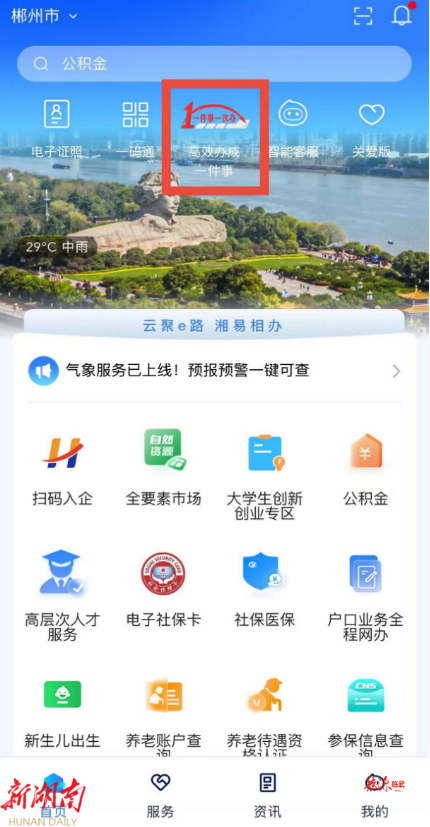 1、注册与登录 :新生儿母亲下载“湘易办”APP,注册账号并登录。
