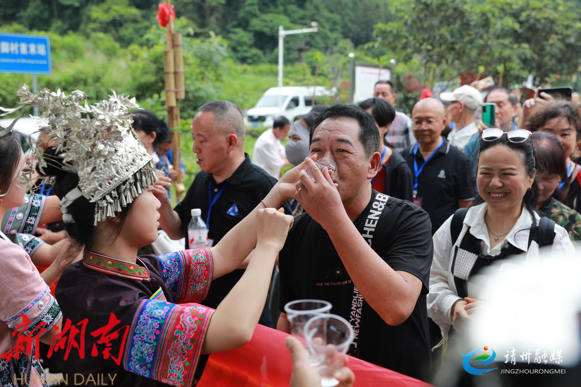抵达岩脚侗寨后,参赛选手们便被身着绚丽服饰的侗族姑娘以“拦门酒”仪式热情相迎。米酒香醇、歌声悠扬,瞬间点燃了现场气氛。