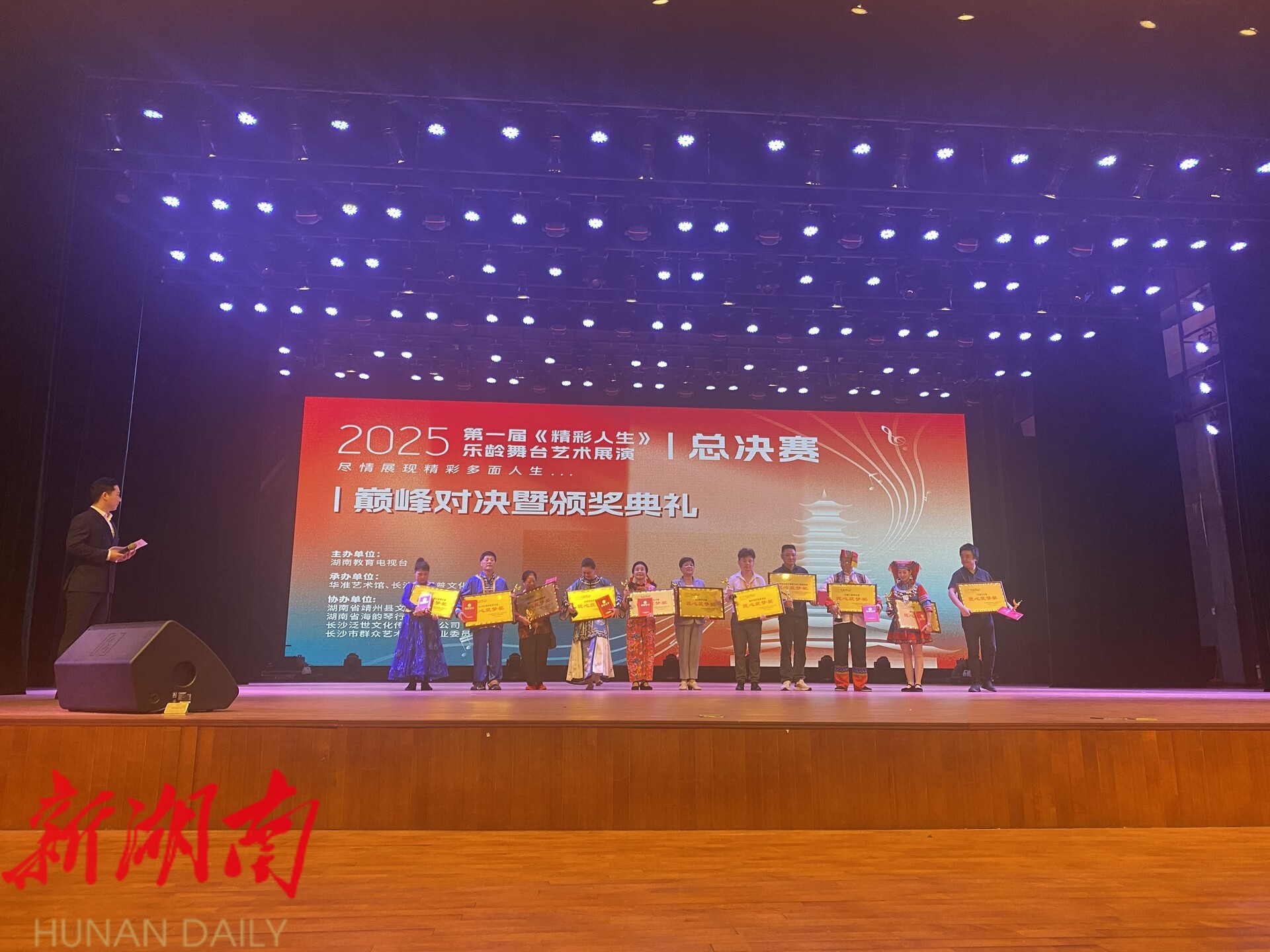靖州融媒5月24日讯 (记者 胡映辉 明睿)5月24日,由湖南教育电视台主办的第一届湖南省《精彩人生》乐龄舞台艺术展演总决赛在靖州苗族侗族自治县剧院举行。