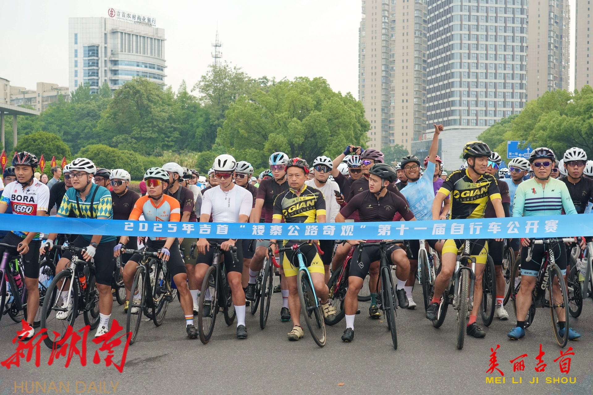 吉首市融媒体中心5月25日讯(全媒体记者 龙佩棂 通讯员 彭琴 谭必武 李瑞)5月25日,2025年吉首“矮寨公路奇观”第十一届自行车公开赛开幕,来自全国近500名骑行爱好者参赛。