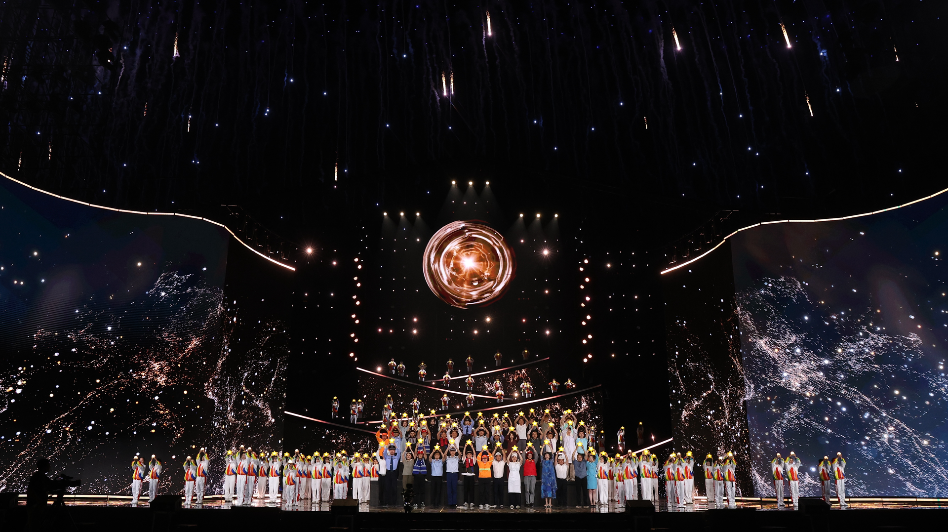 岳阳的文化,是传承千年的家国情怀,是与时俱进的创新精神。在“体育+旅游”深度发展的大背景下,《燃动湖南》以轻松幽默的形式,带领观众“跑” 遍湖南14市州。端午非遗秀《龙吟》以岳阳端午国际龙舟节为创作基底,融入非物质文化遗产或非遗与国风街舞,歌手伯远、赵让参与其中,打造热血激昂的龙舟大秀。戏剧对话节目《家国天下情》跨时空对话,千年忧乐精神赓续,展现从古代到现代家国情怀的传承脉络。点亮仪式环节,通过CG技术与千架无人机释放璀璨光影点亮岳阳各大地标景点,用科技力量为观众带来震撼的视觉享受,展现岳阳的生态之美与人文底蕴。晚会最后,由方琼和何亮辰演唱的主题曲《大美江湖》,全方位生动呈现了岳阳的历史韵味与现代风情。