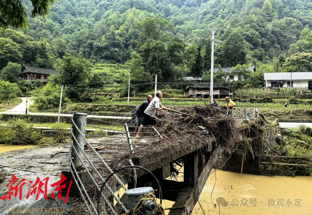 马头溪村朱家岭组人行桥因洪水冲击,桥面上堆积了大量树枝杂物,影响村民通行。许多村民自发带着镰刀、铲子等工具来到现场,加入到清理队伍中。参与清理的老党员全贵楚说:“洪水把我们的家园破坏了,我们不能干等着,自己动手,把桥清理干净,早点恢复正常,心里才踏实。”现场,村干部与群众分工协作,有的负责用工具将大块的杂物搬运到岸边,有的用扫帚清扫细小的垃圾,大家干劲十足。当天下午,桥上的树枝杂物就被清理干净。