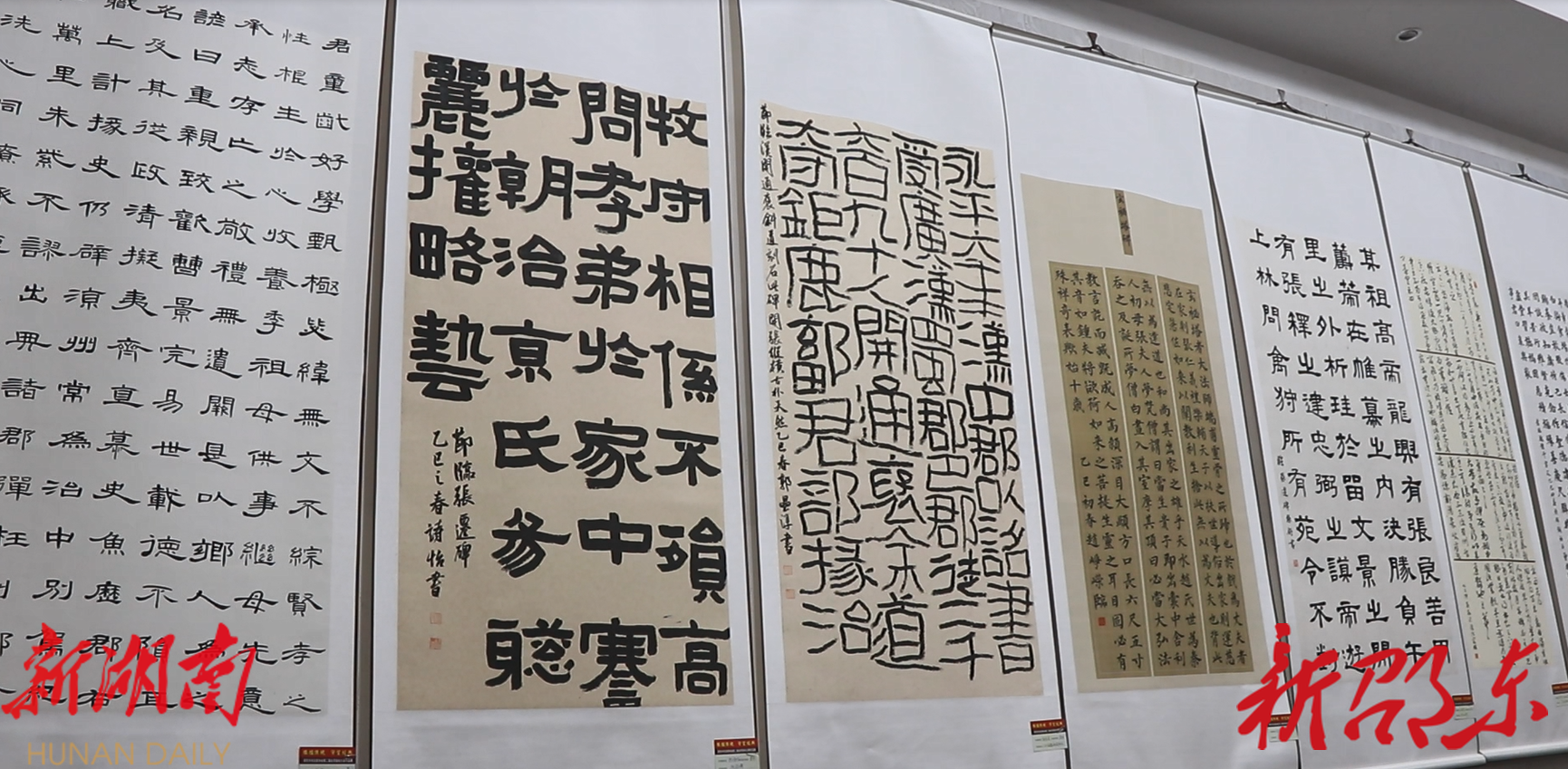 展览现场,市民们在一幅幅精美的书法作品前驻足欣赏,仔细品味笔墨间流淌的韵味与意境。参展作品风格多样,充分展现了邵东书法家扎实的笔墨功力和对传统的深刻理解。