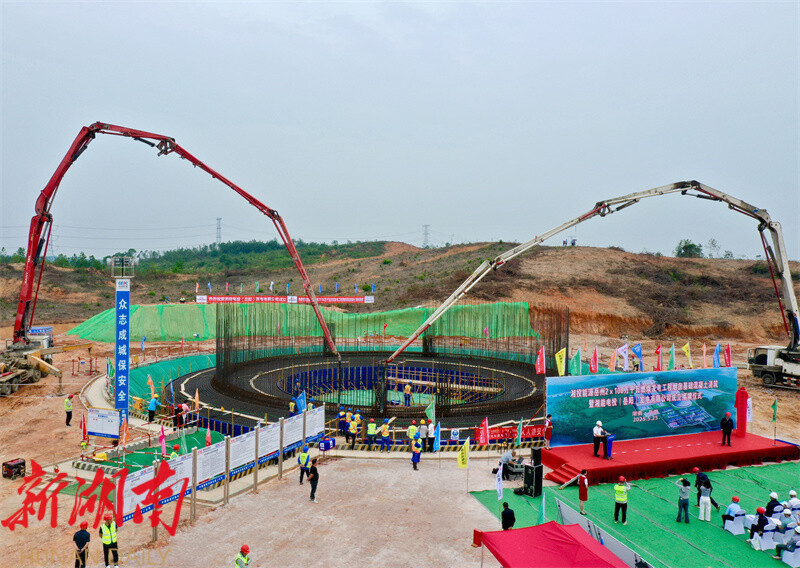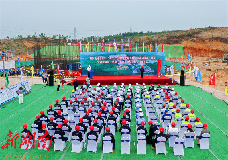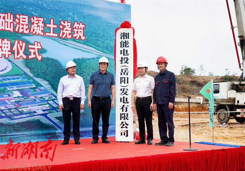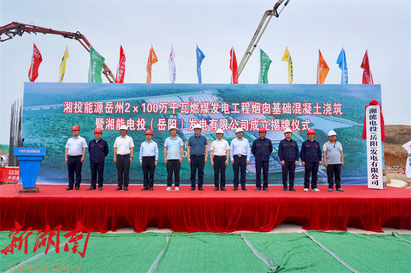 湖南日报·新湖南客户端5月25日讯(通讯员熊佳 罗爽 周星亮) 乘风破浪潮头立,扬帆起航正当时。5月25日,湘投能源岳州2×100万千瓦燃煤发电工程烟囱基础混凝土浇筑仪式暨湘能电投(岳阳)发电有限公司揭牌仪式在岳州电厂项目现场隆重举行,这一重要里程碑的达成,标志着湖南省“十四五”期间重点能源建设项目正式进入主体施工阶段,更彰显出能源建设领域的“巴陵速度”与“湖南能源担当”,绘就了一幅湖南能源与县域发展的崭新画卷。