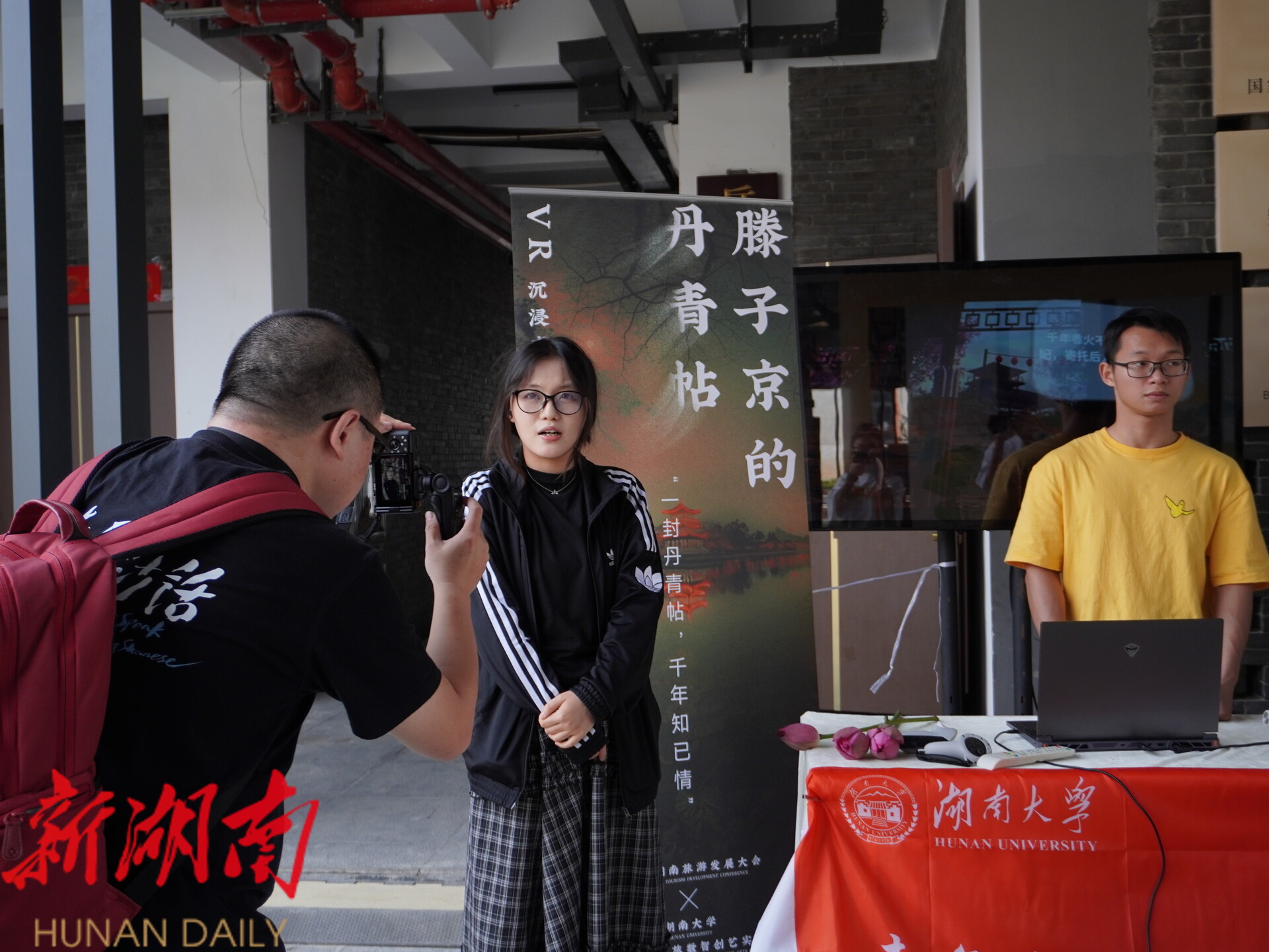 此外,对于参加这次旅发大会,团队成员都十分感慨。“旅发大会的意义,在于让世界看到湖南不仅有厚重的历史,更有将历史转化为当代语言的创新能力。”团队负责人艾心田在展馆现场感慨,“作为新传学子,我们有幸用青春力量参与这场文化创新,从实地采风时的晨光熹微,到实验室里的代码纷飞,每一个像素背后都是对‘讲好中国故事’的执着。未来,我们将继续以科技为翼,让更多湖湘文化地标在数字时代‘活’起来,为湖南‘文化+科技+旅游’的深度融合,贡献属于青年的创意与担当。”