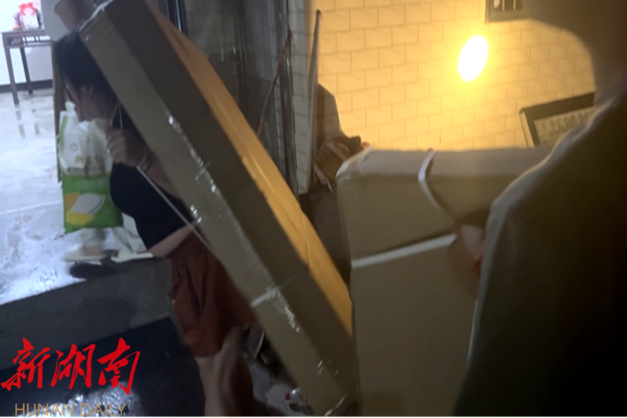 梁得华帮助村民转移物资