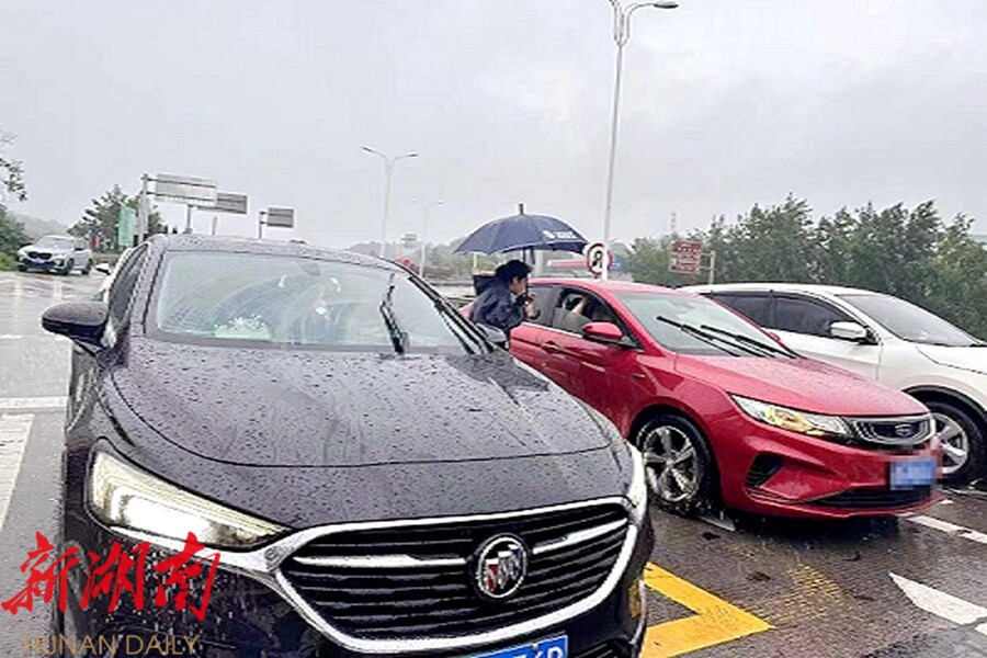 面对汛情,常德西中心站迅速响应,全员上岗,累计劝返车辆300余台次,未发生一起冲卡事件,有力保障了特殊天气下的道路交通安全。下午六时,暴雨导致能见度骤降至不足50米。收费站立即关闭所有入口车道,收费班长周燕带领她的“芙蓉”女子班组在雨中对滞留车辆进行耐心疏导。“师傅,您好,因暴雨前方能见度不足50米,为了您的安全,请您从前方收费站掉头,谢谢您的配合”,“师傅,这是免费提供的绕行地图。"收费员袁钰婷一边向司机解释,"一边递上印有国道路线的便民卡片。部分滞留司乘情绪焦躁,她们免费为他们提供热水、泡面等应急物资,安抚情绪,不到一个小时,她们的制服完全被雨水浸透。这份雨中坚守:让劝返工作更有温度。