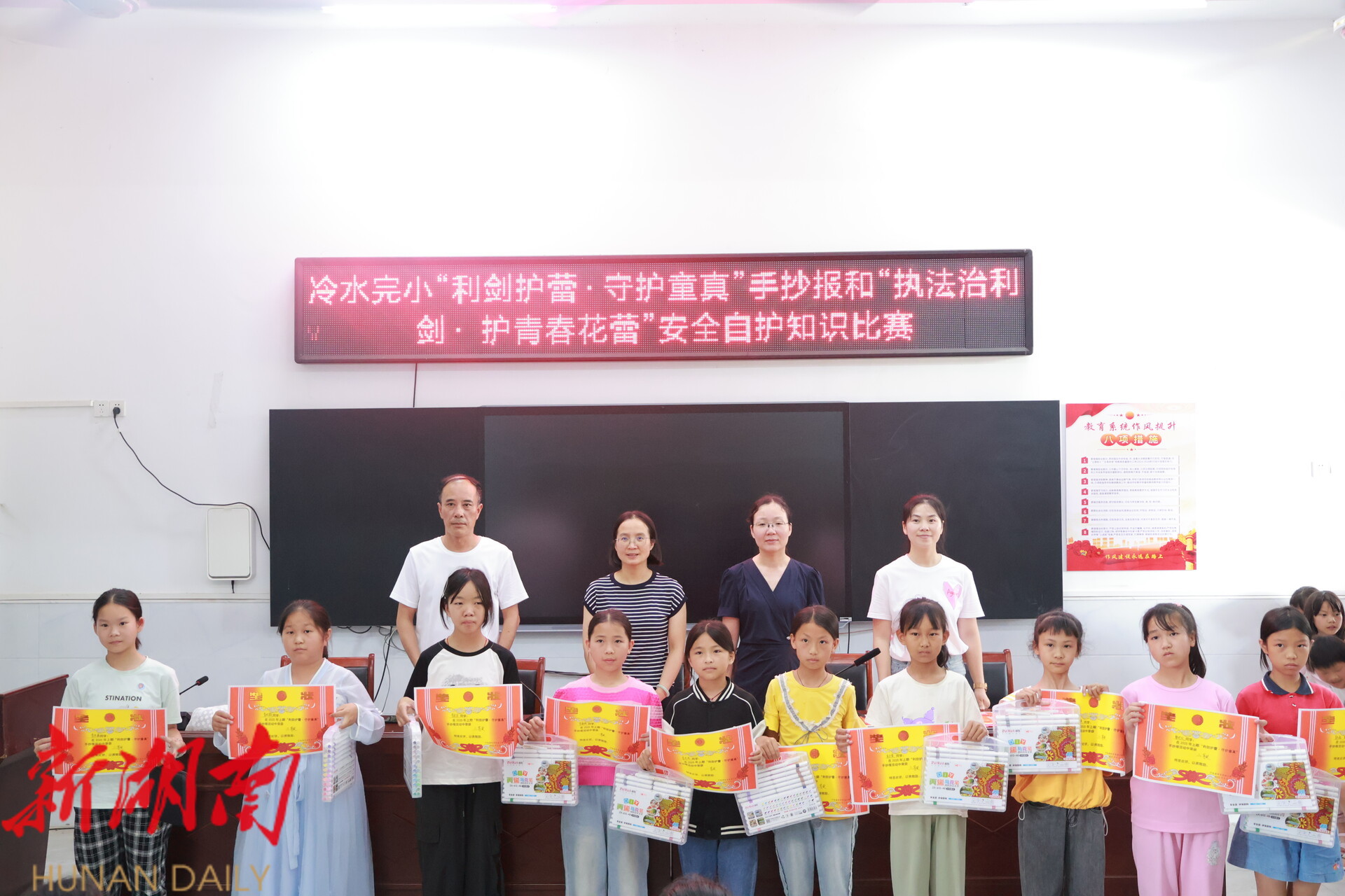 湖南日报·新湖南客户端5月26日讯(通讯员 宁新综) 在“六一”国际儿童节来临之际,宁远县妇联联合县教育局、民政局、关工委、冷水镇政府,在冷水镇完小开展“利剑护蕾·守护童真”手抄报和“执法治利剑·护青春花蕾”安全自护知识竞赛。