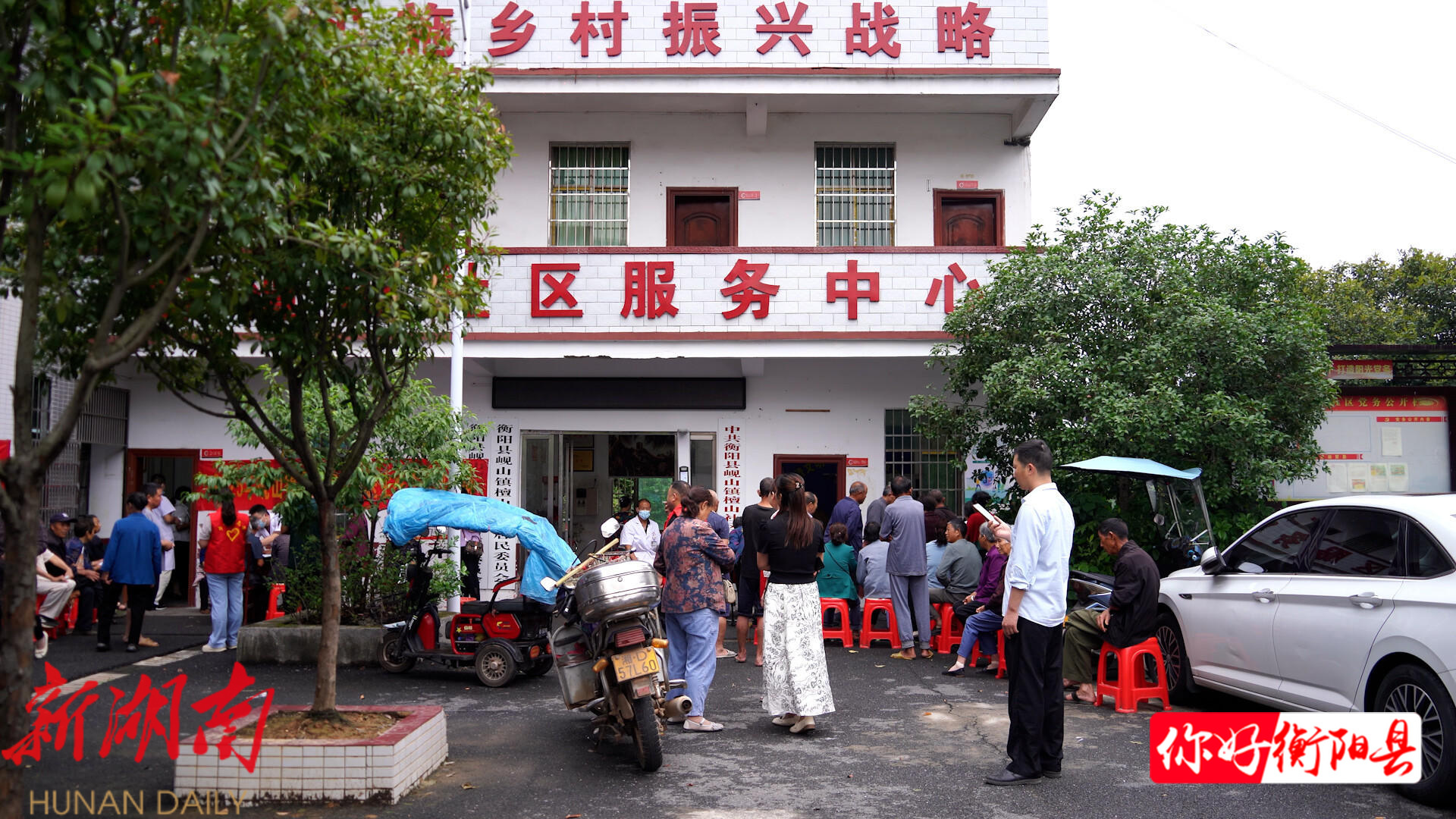 在衡阳县岘山镇檀山社区服务中心,岘山镇卫生院的医务人员 正在 为前来办理家庭医生签约的群众 免费 体检 , 对行动不便的老人,卫生院安排专人陪同办理各项服务。同时,根据检查结果,医生还 从慢性病管理、科学用药、合理膳食、心理健康 引导 等多角度给予科学指导和建议。