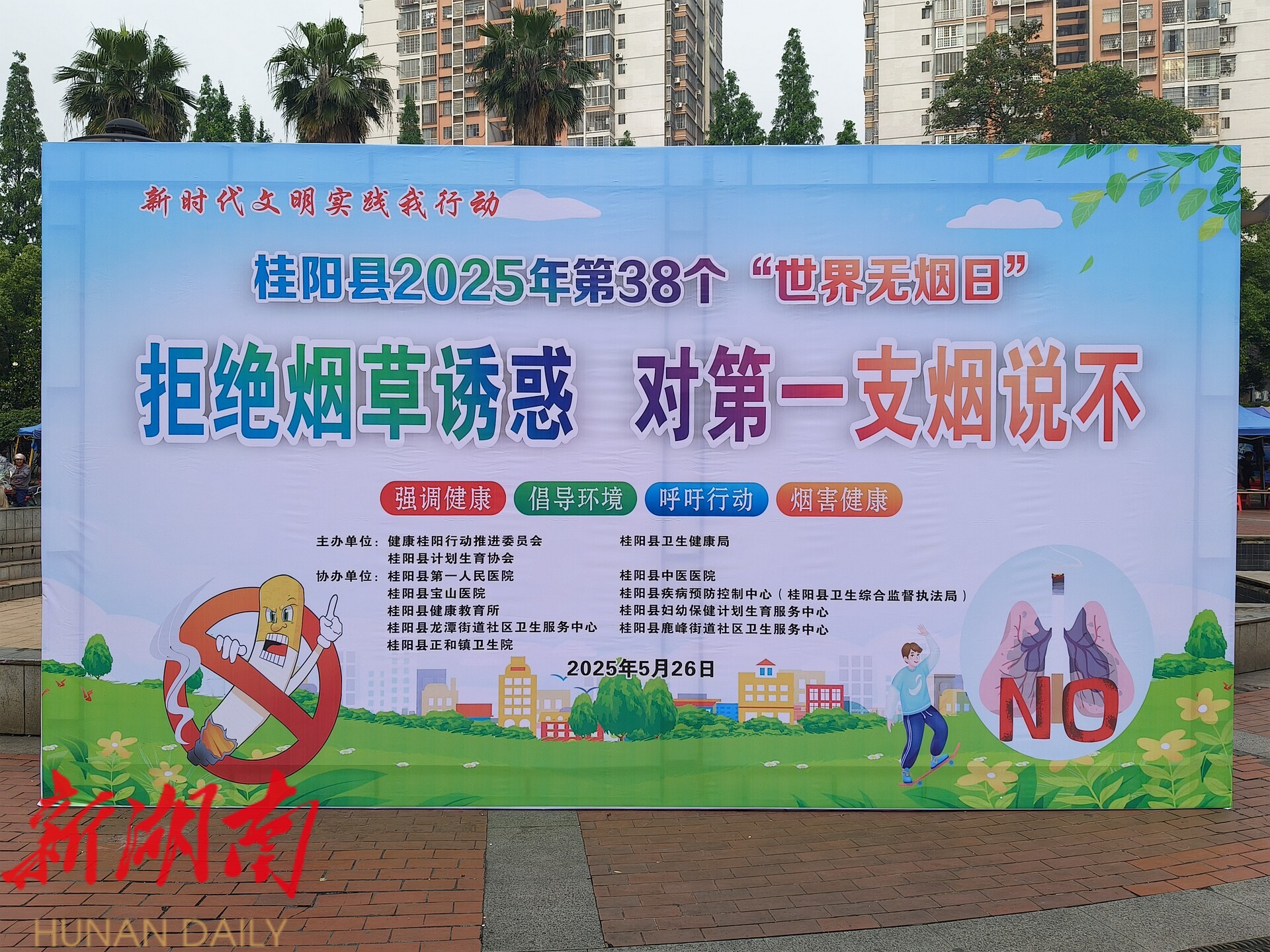 新桂阳5月27日讯(记者 邓明俊 )为提高市民对烟草危害的认识,倡导健康生活方式,5月26日, 我县在蔡伦广场开展以“拒绝烟草诱惑 对第一支烟说不”为主题的第38个“世界无烟日” 宣传活动。