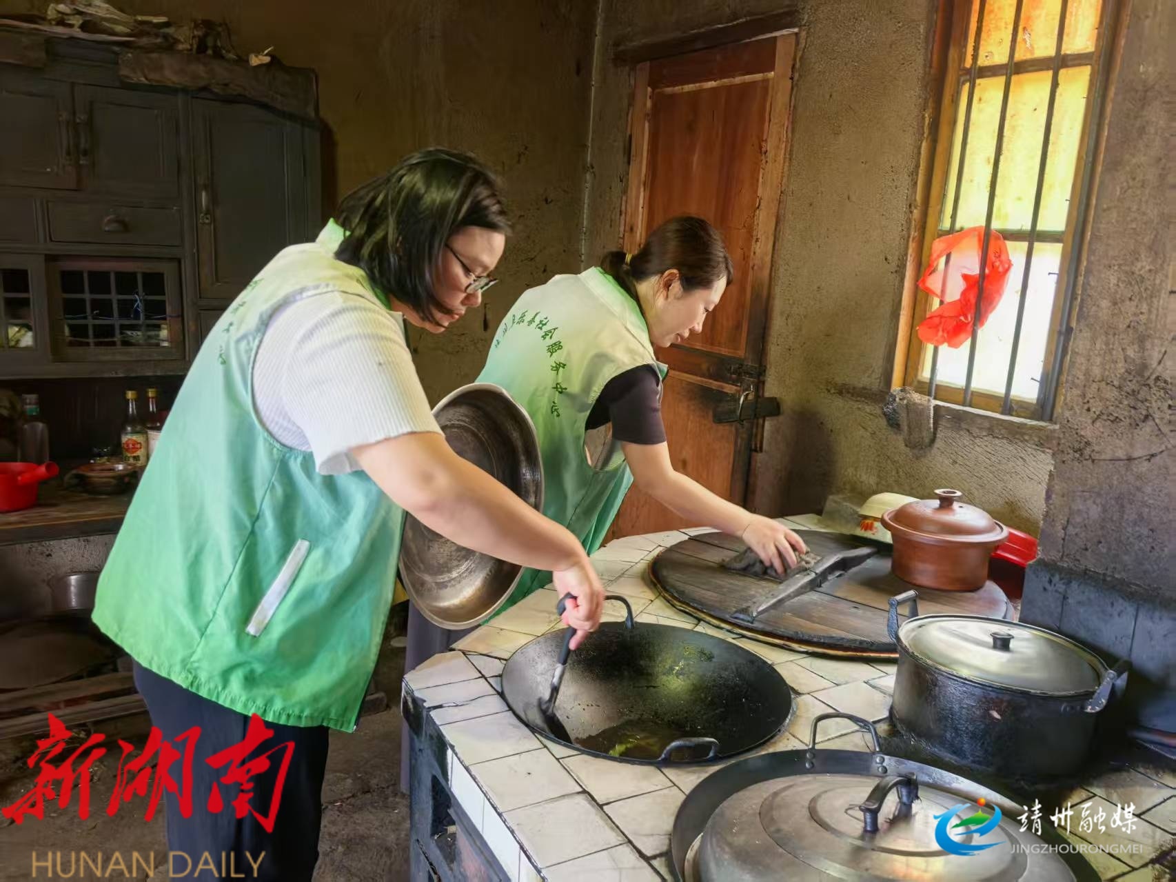 工作人员在老人家里打扫卫生(周悦伊 摄)