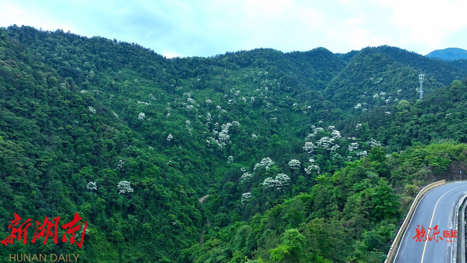 龙源临武客户端5月27日讯(记者 雷婉婷 邓圣立)近日,滴水源景区附近的千亩野生油桐林如约绽放,层层叠叠的素白花海与苍翠山峦相映成趣,为寂静的山谷披上了初夏的“盛装”。