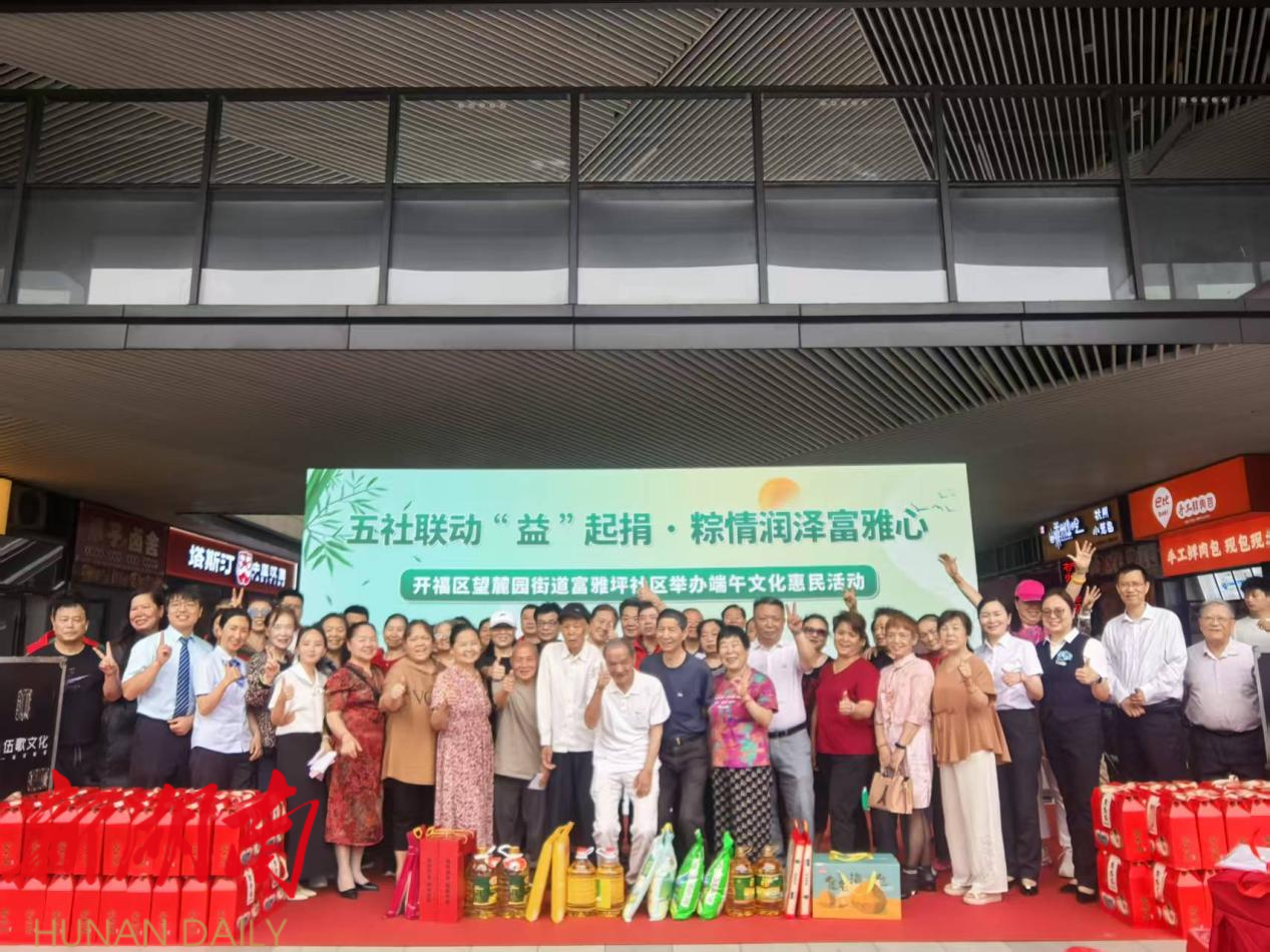 湖南日报·新湖南客户端5月27日讯(通讯员 朱秀云)粽叶飘香传古韵,五社联动暖民心。5月27日,开福区望麓园街道富雅坪社区党委携手辖区五大银行及爱心单位,以长沙市首届“公益季”为契机,在华润置地创新开展“五社联动‘益’起捐·粽情润泽富雅心”端午文化惠民暨社会科学普及周特色活动,吸引了辖区居民、爱心企业和志愿者200余人参与,推进“我在文明实践中心过佳节”系列活动,以传统文化为媒,绘就社区治理新图景。