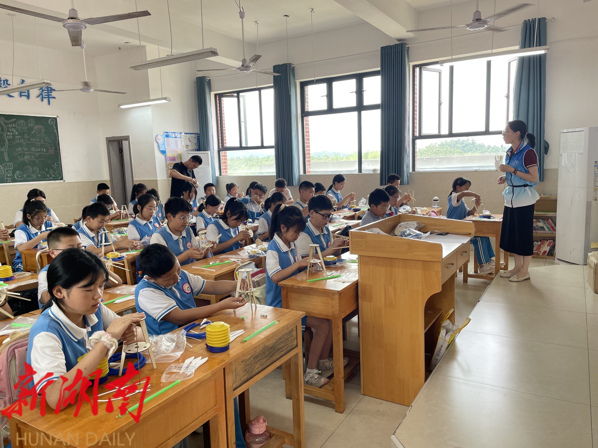 “快速按动尺子,纸却没有掉下来,大家知道是什么原因吗?”当天上午9时许,在金龙学校六(一)班,县科协志愿者正在给孩子们讲解相关科学知识。在讲解完知识点后,志愿者还手把手地教导孩子们手工制作“空气火箭”。“老师讲的内容也非常有趣,自己做了一个‘空气火箭’真的太酷了。”六(一)班学生徐辰逸说。