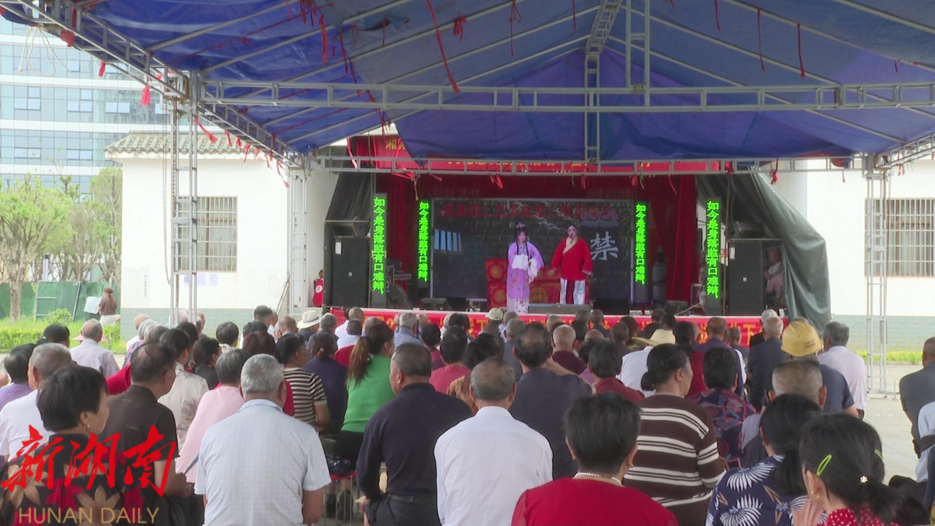 上午9点半,金龙村广场上“梨园”开幕!花鼓戏演员们以精湛的演技、婉转的唱腔和生动的表演,赢得了观众阵阵掌声和喝彩。上午《家和万事兴》,下午《移风易俗专场演出系列节目》《龙泉剑》,好戏连台一整天,让村民们在家门口就过足了“文化瘾”。