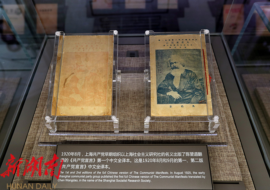 中共一大纪念馆展出的由陈望道翻译的《共产党宣言》第一个中文全译本。新华社记者 刘颖 摄