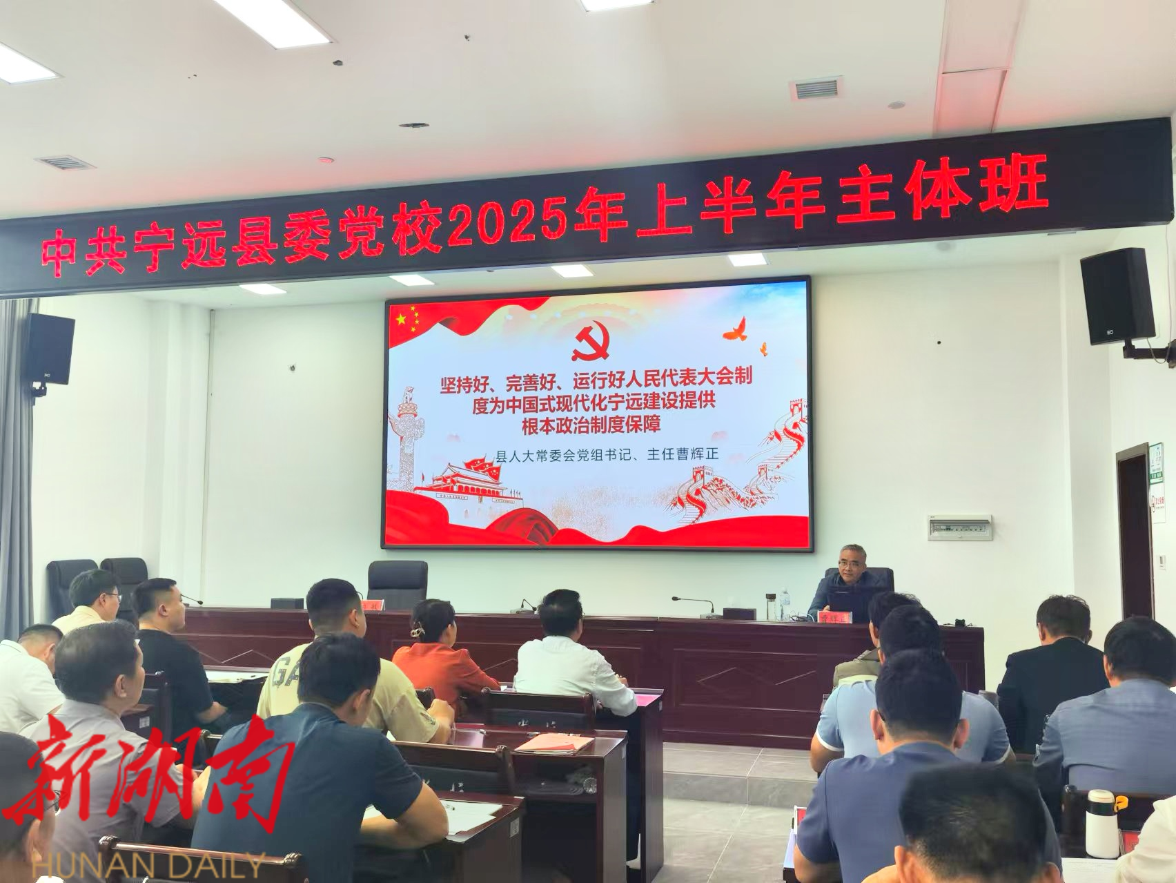 湖南日报·新湖南客户端5月28日讯(通讯员 蒋嫦春) 5月27日,宁远县人大常委会主任曹辉正走进县委党校,以《坚持好、完善好、运行好人民代表大会制度 为中国式现代化宁远建设提供根本政治制度保障》为题,为县委党校2025年上半年主体班102名学员讲授专题党课,深刻阐释人民代表大会制度的内涵与实践要求 。
