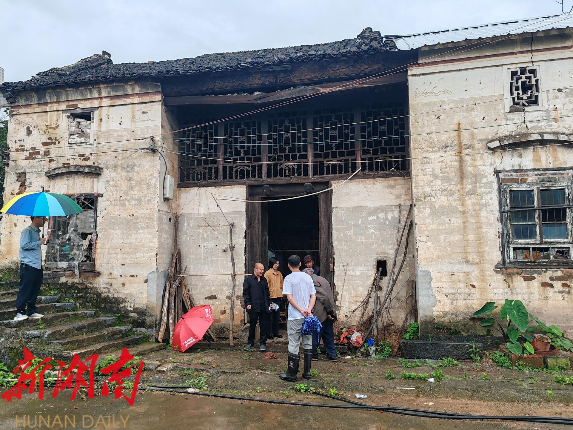 “老邓,今明两天你要搬到亲戚那里去住一下,等后天强降雨天气结束后再搬回来。”南衙村驻村干部正冒雨劝导村民搬离老旧房屋。