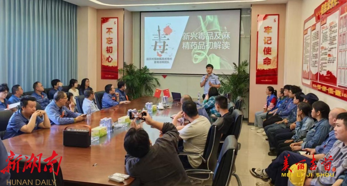 吉首市融媒体中心5月28日讯(通讯员 钟慧雯 熊思勇 任彤庆 ) “遇到中暑人员,需第一时间转移至阴凉通风处,解开领口散热。”“犯罪分子常将依托咪酯伪装成电子烟,或在网红减肥药中添加甲基苯丙胺,给新型毒品披上‘低危害’外衣。”5 月 28 日,吉首市政府办(禁毒办)、市红十字会联合州强戒所、州红十字会志愿服务队,为 50 余名企业员工开展培训,提升应急自救互救能力与毒品防范意识。