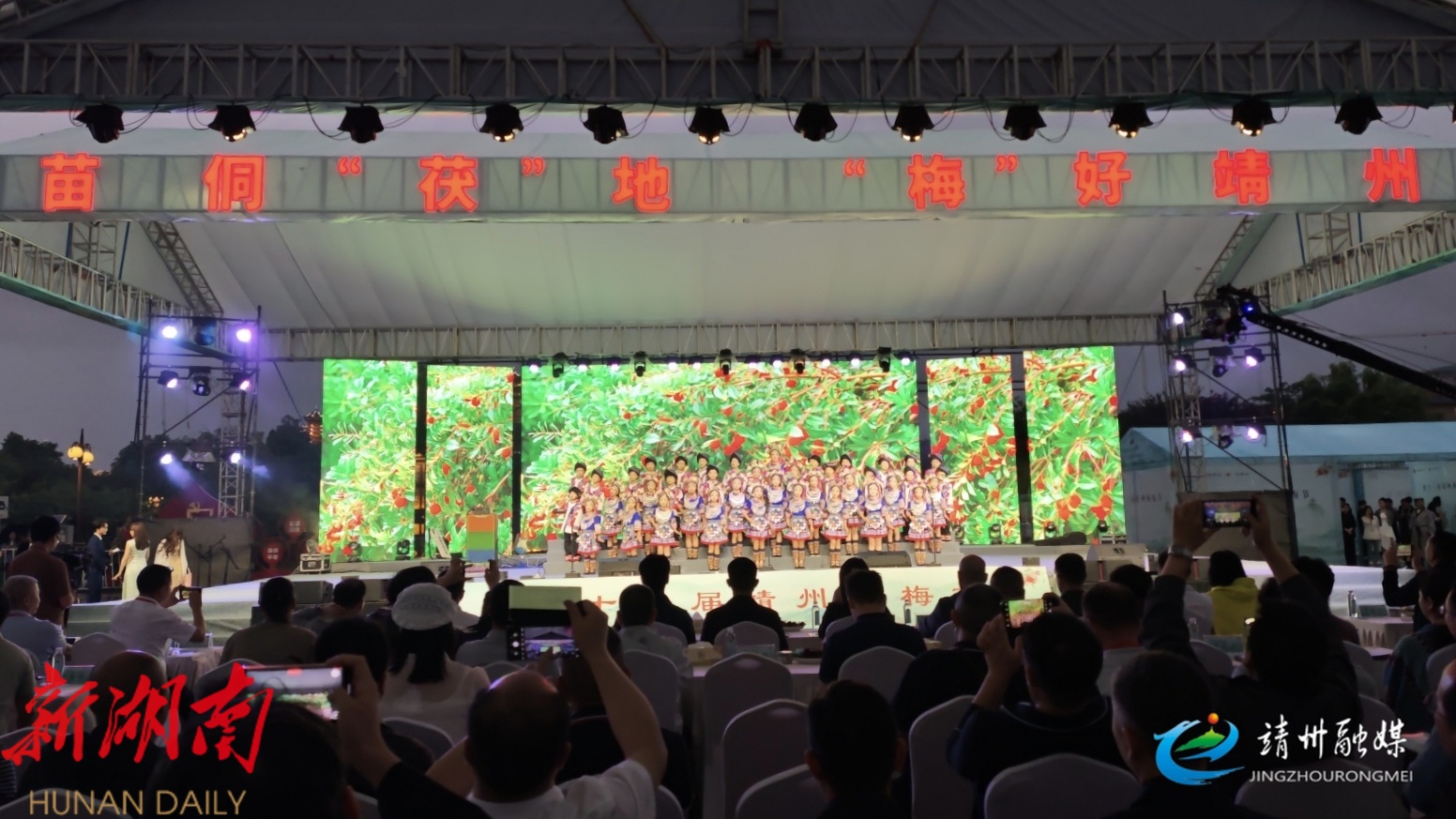 靖州融媒5月29讯 (记者 蒲湘萍 孙文月)5月28日晚,靖州苗族侗族自治县民族广场灯火璀璨,第十三届靖州杨梅节系列活动之一的杨梅音乐会 “梅”好之夜在这里激情开唱,欢快动感的节拍交织着杨梅酸甜的果香,为现场的观众勾勒出一幅充满地域风情与文化魅力的"梅"好画卷。