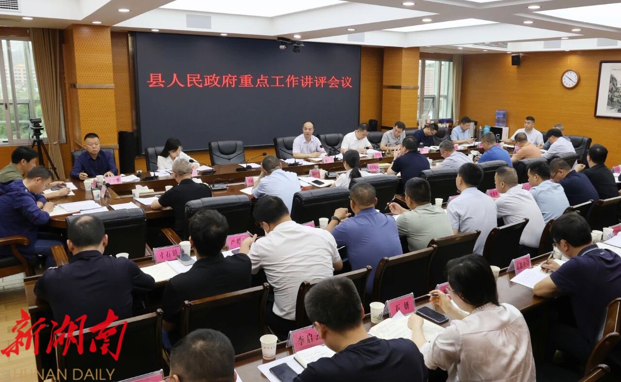 新新邵客户端5月29日讯(记者 屈凌芙蓉 唐文峰)5月28日,新邵县委副书记、县长谢小军主持召开县人民政府重点工作讲评会议,总结分析前段工作开展情况,安排部署下阶段重点工作,动员全县上下保持定力、主动担当,坚定不移实施“七大攻坚”,推动高质量发展。县委常委、常务副县长王智刚,副县长刘焕、张明艳、黄洁辉出席。