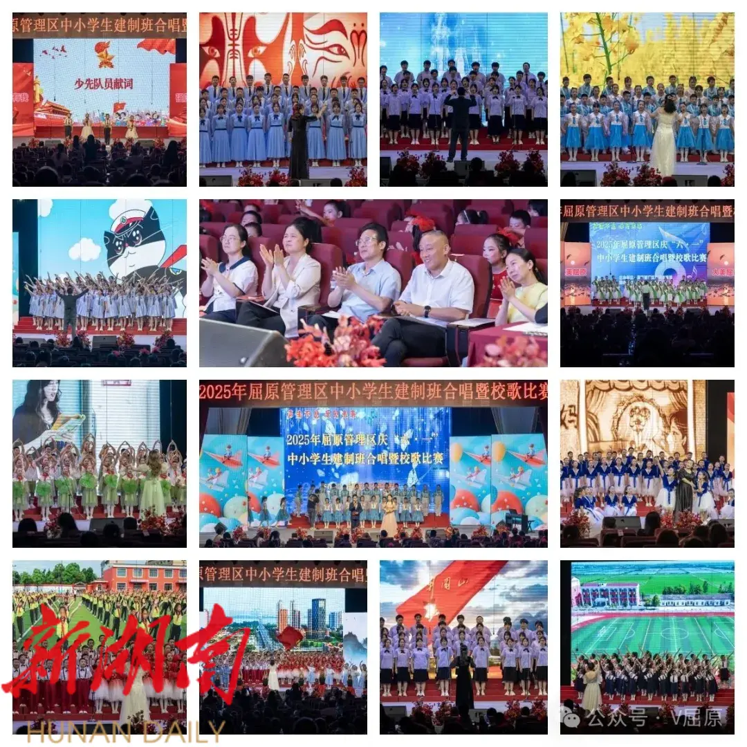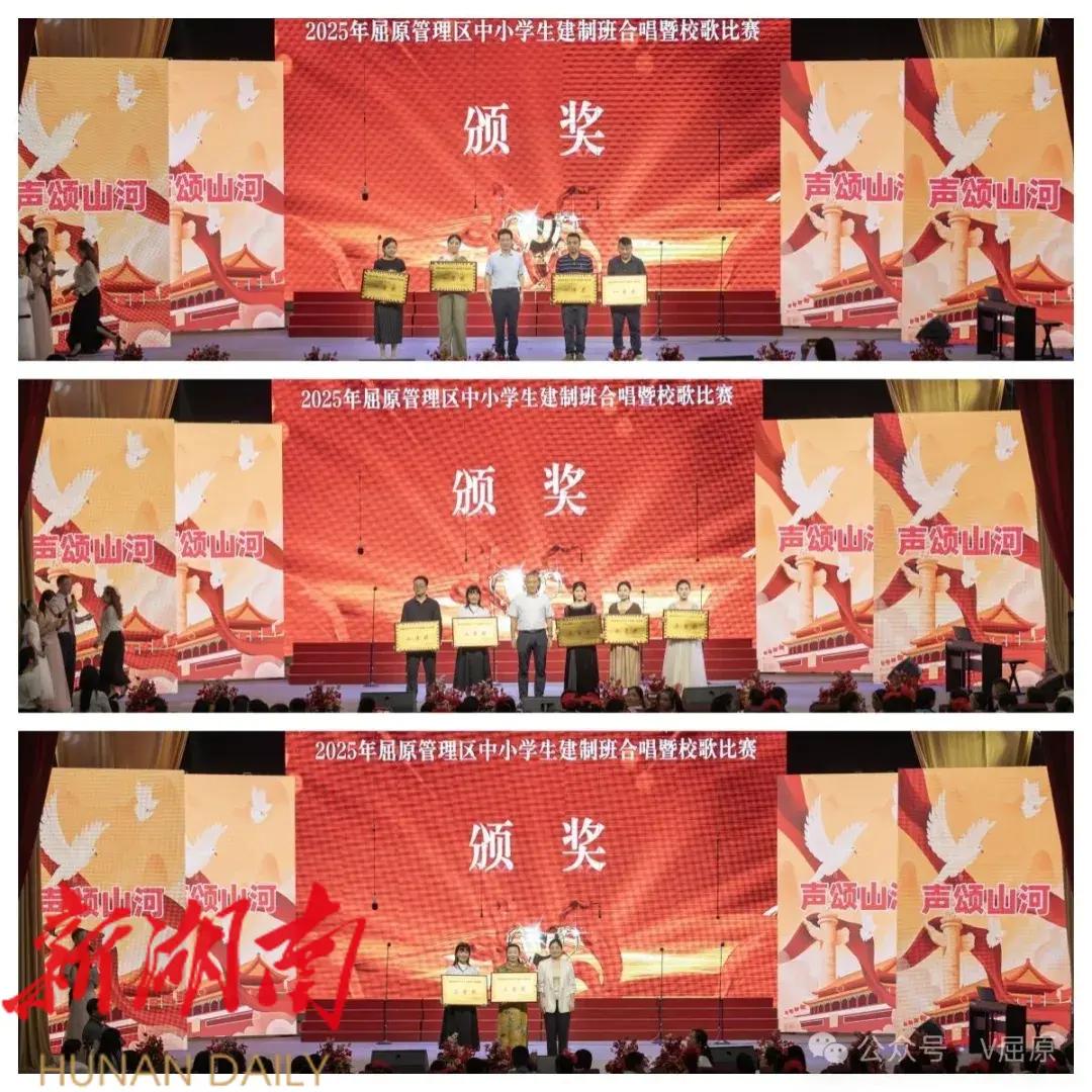 经过激烈角逐,屈原中学高一 274 班、屈原二小四年级 152 班摘得建制班合唱比赛一等奖;屈原中学(初中组)、河市镇学校斩获校歌合唱比赛一等奖。本次赛事以 “赓续湘脉楚韵,唱响时代强音” 为主题,通过音符培养学生审美情趣与艺术修养,又以校歌为载体培育知校爱校的情怀,为校园美育改革发展注入了鲜活力量。