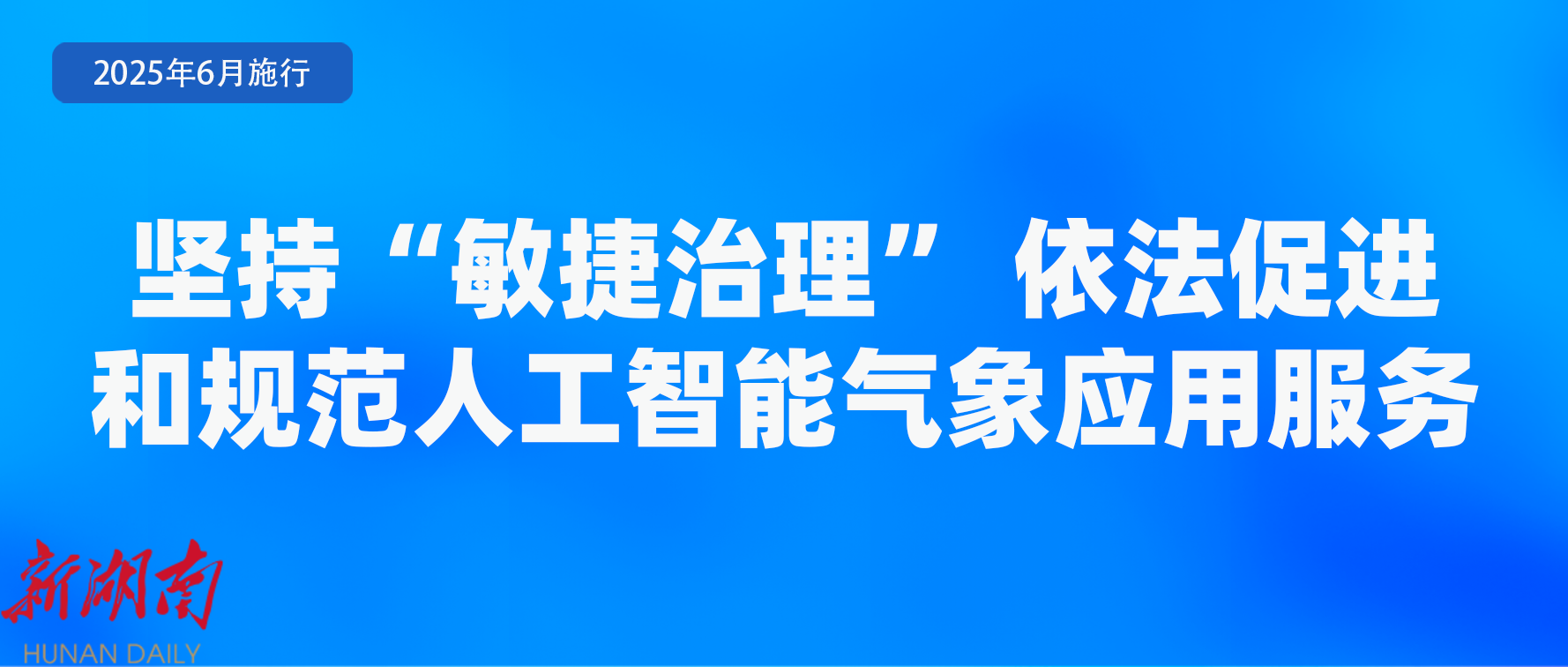 2025年6月1日起,中国气象局、国家互联网信息办公室发布的《人工智能气象应用服务办法》施行。《办法》以“敏捷治理”为重要原则,尊重人工智能发展规律,坚持促进创新和依法治理相结合的立法定位。《办法》围绕数据开放、算法模型研发和应用场景赋能等提出了具体政策支持和促进措施,加强人工智能与气象监测预警、预报预测、数值预报等领域深度融合应用,构建人工智能气象应用服务场景。同时对气象主管机构参与国际气象领域人工智能应用服务的发展和治理做出了规定。