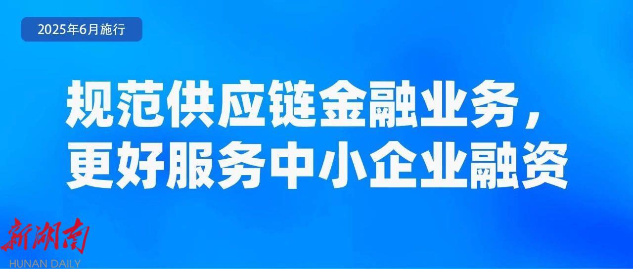 中国人民银行等六部门联合印发《关于规范供应链金融业务 引导供应链信息服务机构更好服务中小企业融资有关事宜的通知》,自2025年6月15日起施行。《通知》要求,供应链核心企业及时支付中小企业款项,合理共担供应链融资成本,不得利用优势地位拖欠中小企业账款或不当增加中小企业应收账款。明确应收账款电子凭证付款期限原则上应在6个月以内,最长不超过1年。鼓励商业银行发展多样化的供应链金融模式,支持供应链企业尤其是中小企业开展信用贷款及基于订单、存货、仓单等动产和权利的质押融资业务。