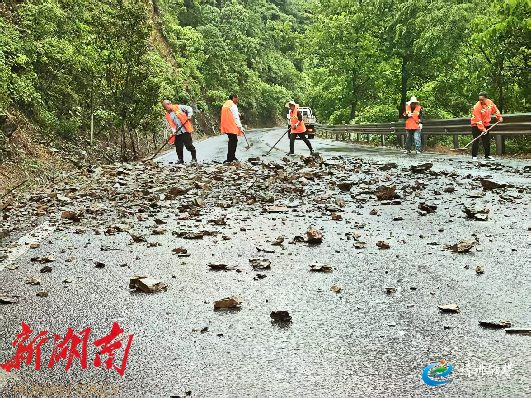靖州融媒5月29日讯 (通讯员 邓瑶 热娜古丽·阿不都拉)5月27日至28日,靖州苗族侗族自治县遭遇持续性强降雨,部分公路出现积水、塌方、树木倒伏等险情,对交通安全构成严重威胁。县公路建设养护中心迅速反应,第一时间启动应急预案,组织人员器械奔赴一线开展抢险工作。