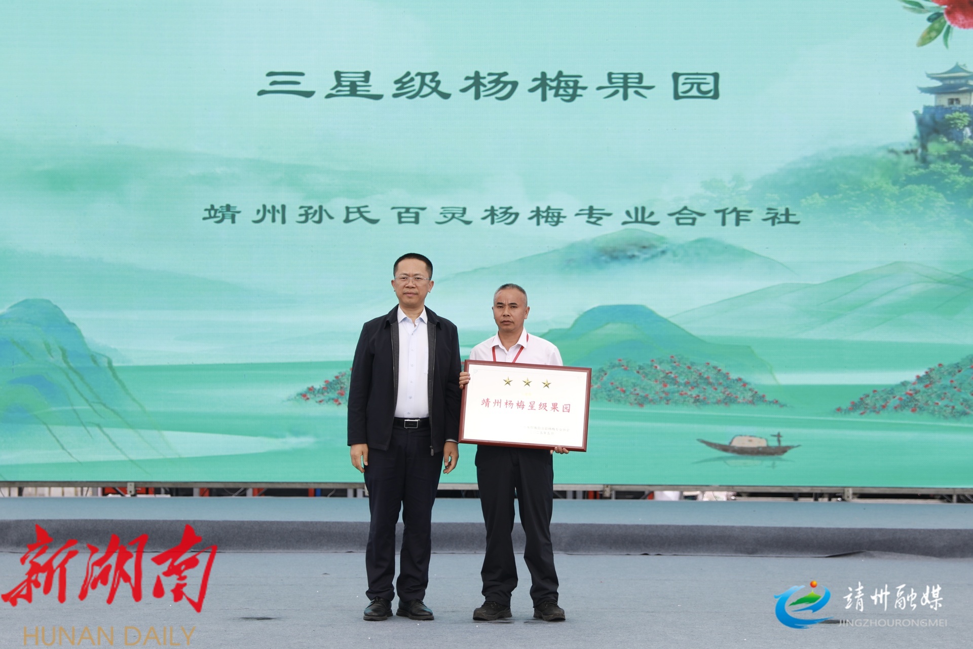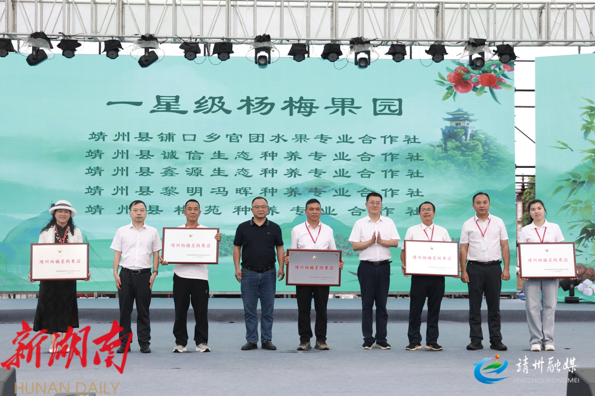 靖州融媒 5月29日讯 (记者 孙文月 许梦娟 蒲湘萍 胡耀文 通讯员 吴亚陆) 5月29日,在第五届湖南旅游发展大会“福地怀化・康养季”2025年第十三届靖州杨梅节开幕式上,靖州孙氏百灵杨梅专业合作社、靖州万家园种养专业合作社等八家果园喜获杨梅 “星级”果园 称号。