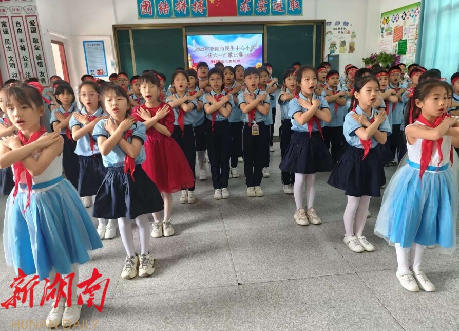湖南日报·新湖南客户端5月29日讯(通讯员 唐亚敏) 5月29日,祁阳市龙山街道民生中心小学举办了“少年儿童心向党 歌声嘹亮颂党恩”庆六一歌咏比赛,各年级全体学生以班级为单位参加了比赛。