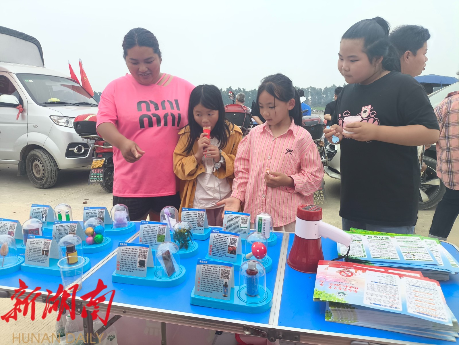 湖南日报·新湖南客户端5月29日讯(通讯员 谭西雅)“咚!咚!咚——”5月29日,湘资河畔鼓点铿锵,河岸两侧人潮如织。新泉镇联合镇派出所、司法所及禁毒志愿者,巧妙利用龙舟赛事人流密集的优势,在观赛区支棱起“禁毒摊位”,通过实物展陈、互动答题、现场讲解等形式,向群众普及禁毒知识,实现民俗活动与禁毒宣传的创新融合。