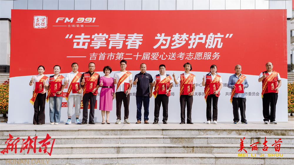 吉首市融媒体中心5月29日讯(全媒体记者 何鑫 向涛 戴恋萍 姚元浩 ) 二十年,温情依旧,护航不止。5月29日,“击掌青春 为梦护航”——吉首市第二十届爱心送考志愿服务活动在市政府前坪温暖出发。