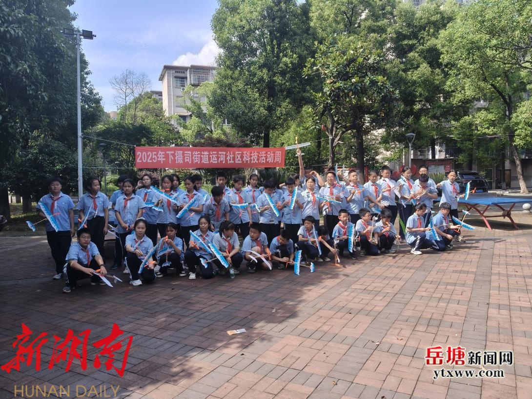 岳塘融媒5月29日讯 (通讯员:尹慧)为提升全民科学素质,营造“学科学、爱科学、用科学”的良好氛围,近日,岳塘区下摄司街道运河社区联合湘机小学开展“矢志创新发展 建设科技强国”科技活动周活动,组织50余名学生一同制作“皮筋飞机”。