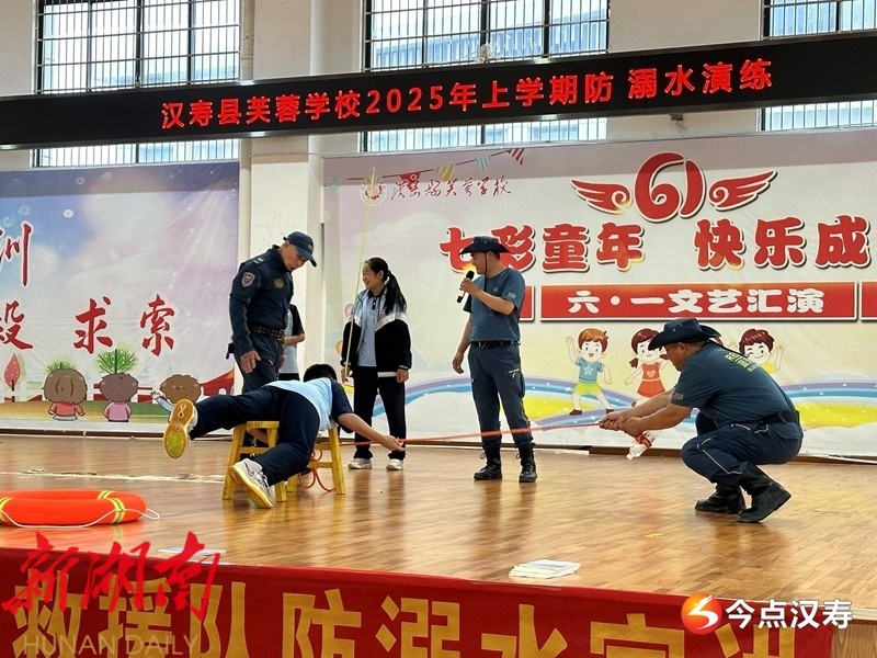 汉寿融媒5月29日讯 (通讯员:李贤丝)5月28日,汉寿县芙蓉学校特邀汉寿应急蓝天救援队走进校园,开展了一场生动实用的防溺水安全宣讲与实操演练活动。