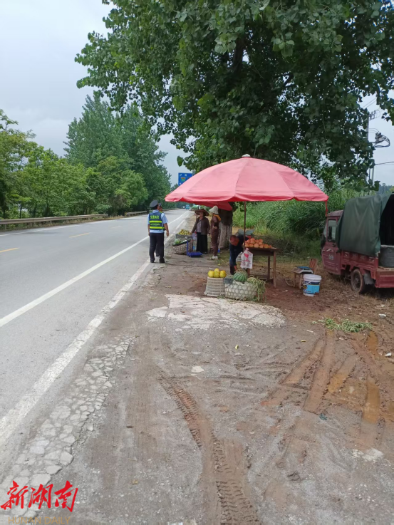 执法人员坚持宣传教育为主,耐心向其讲解在公路两侧摆摊设点的危害性、违法性,提高瓜农的安全意识、守法意识,劝导瓜农不要将摊点摆在道路两边,并协助瓜农们将摊点撤离至指定安全区域,保持公路安全畅洁的通行环境。