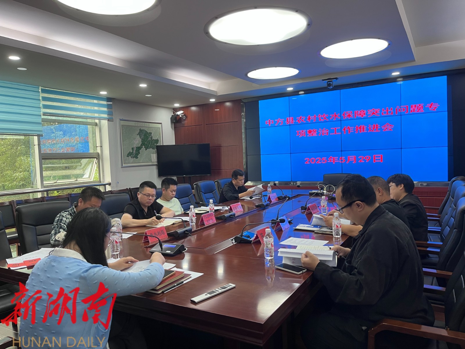 中方融媒5月29日讯 (通讯员:向睿) 5月29日上午,中方县召开农村饮水保障突出问题专项整治工作推进会议。县纪委监委驻农业农村局纪检监察组、县发改、财政、住建、卫健、生态环境等相关部门负责人参加会议,共同研究部署专项整治工作。