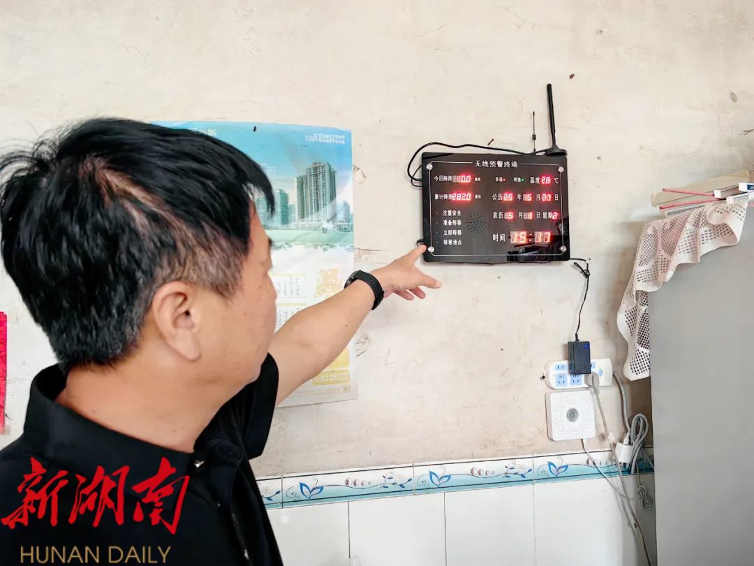 在村民李庭桂家的墙面上,一台无线预警终端入户报警器格外醒目。李庭桂对这个“安全卫士”已十分熟悉:“大家都知道这是山洪预警设备,有了它,警报一响就知道该避险了,心里踏实多了!”