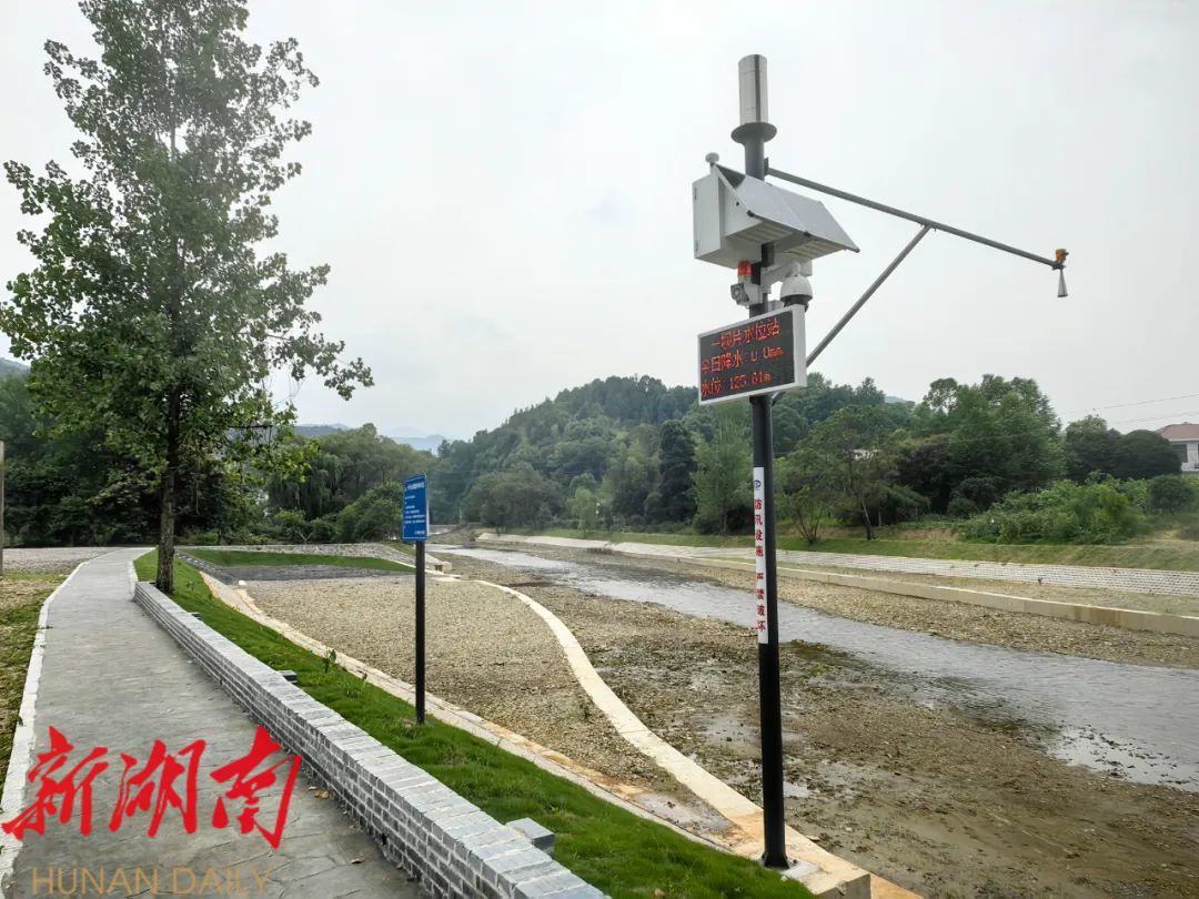 设在岸边的水情声光一体站,能实时监测降雨和水面变化。当雨量、水位超过阈值,立即触发声光报警,并将监测数据与现场视频传至宝盖寺村山洪灾害综合防御指挥所,为防洪决策提供依据。