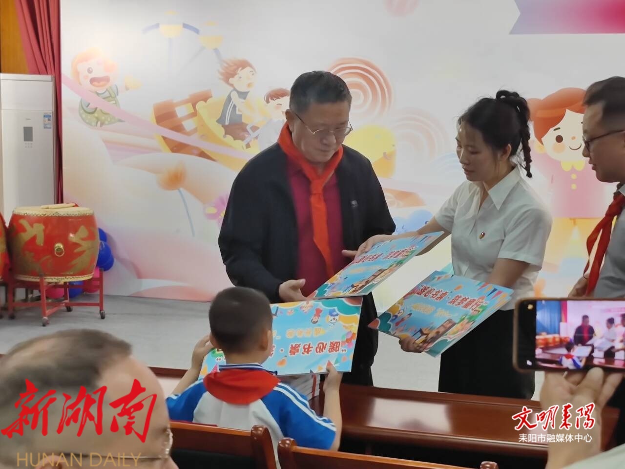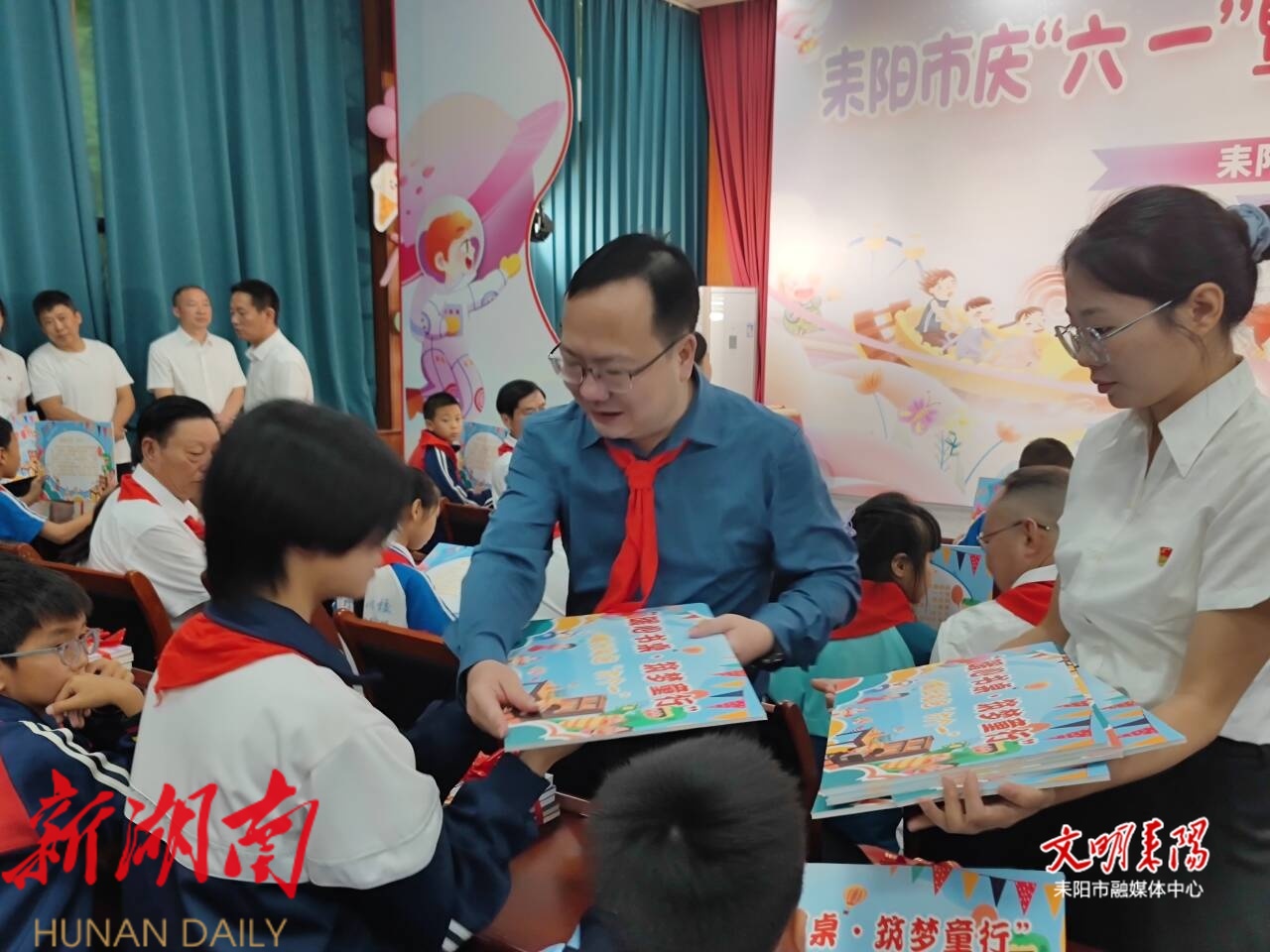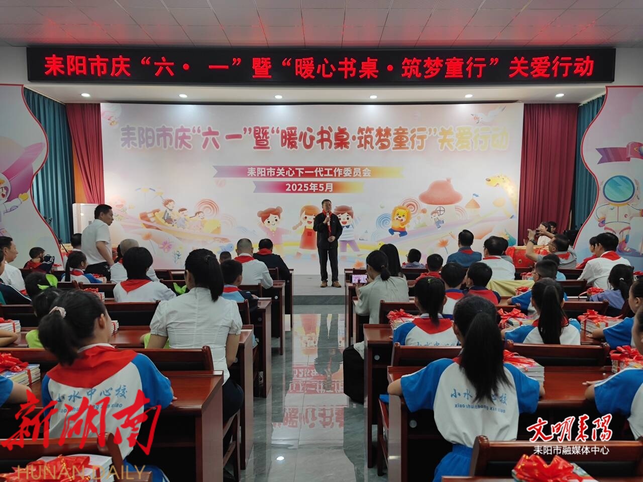 耒阳融媒5月29日讯(记者 钟杰 李双鸿) 5月29日,耒阳市“六一”暨“暖心书桌·筑梦童行”关爱行动举行。衡阳市关工委主任谢宏治,耒阳市委副书记、政法委书记王星皓与小水镇中心完小的小朋友们共庆“六一”国际儿童节并讲话,市委常委、组织部部长颜洞宾主持活动。